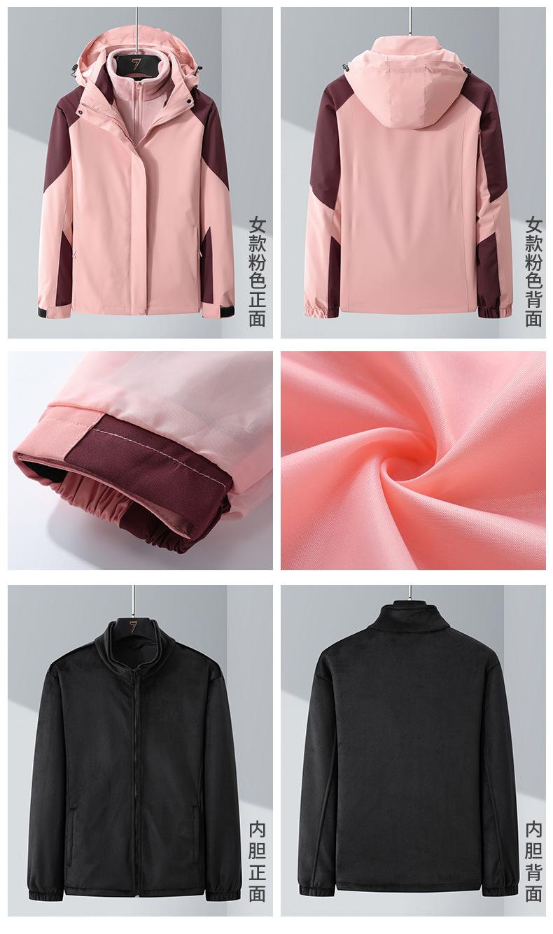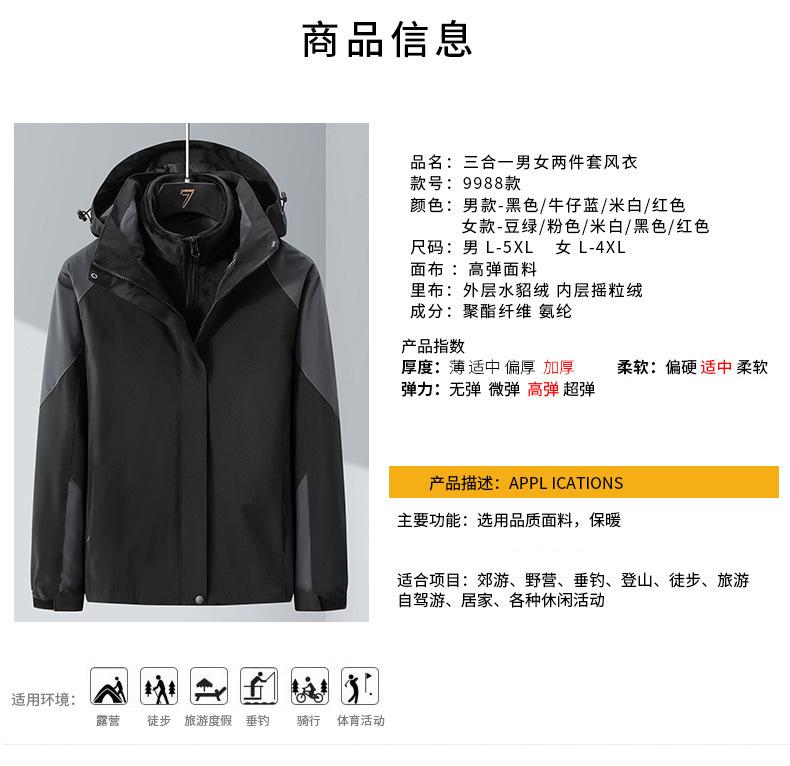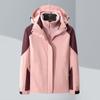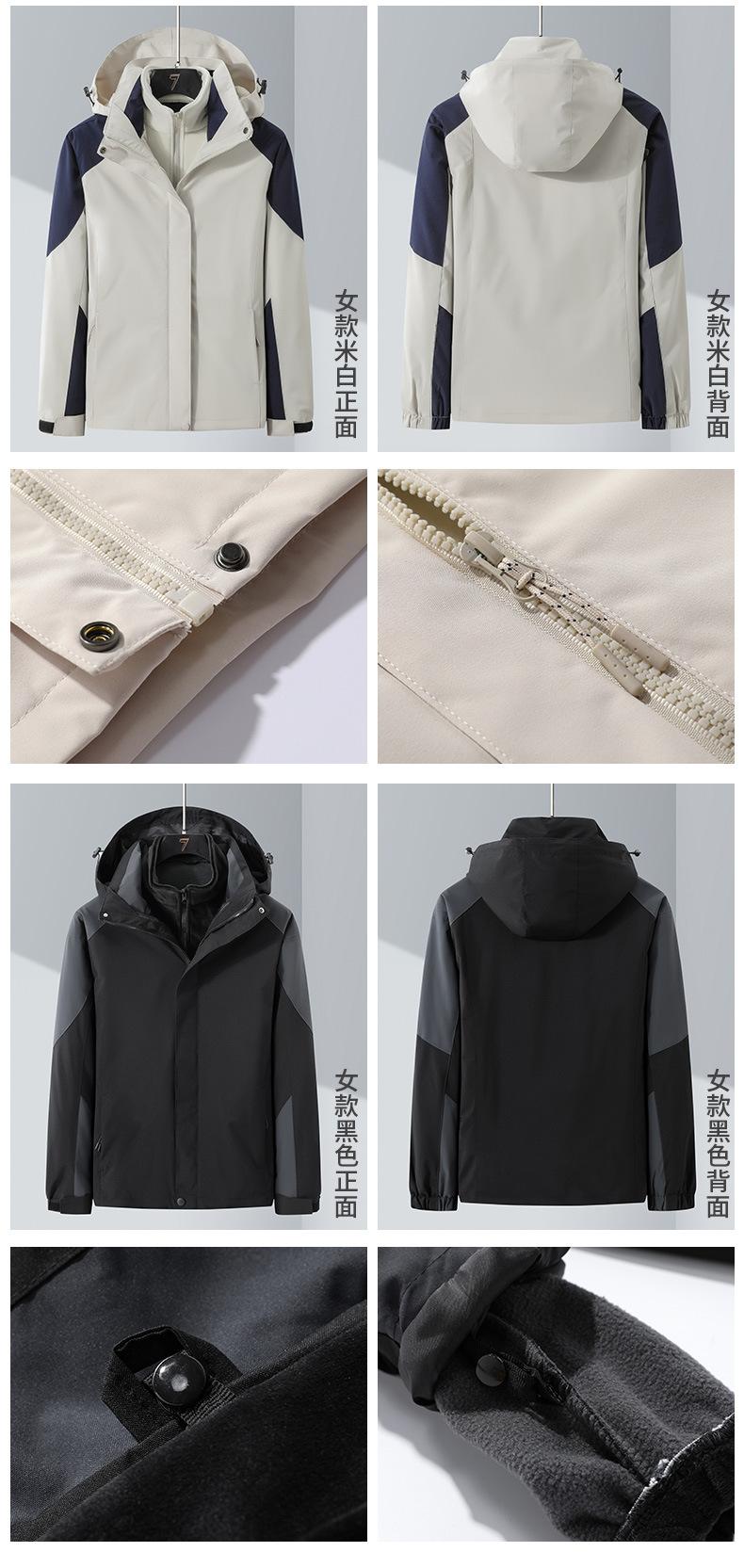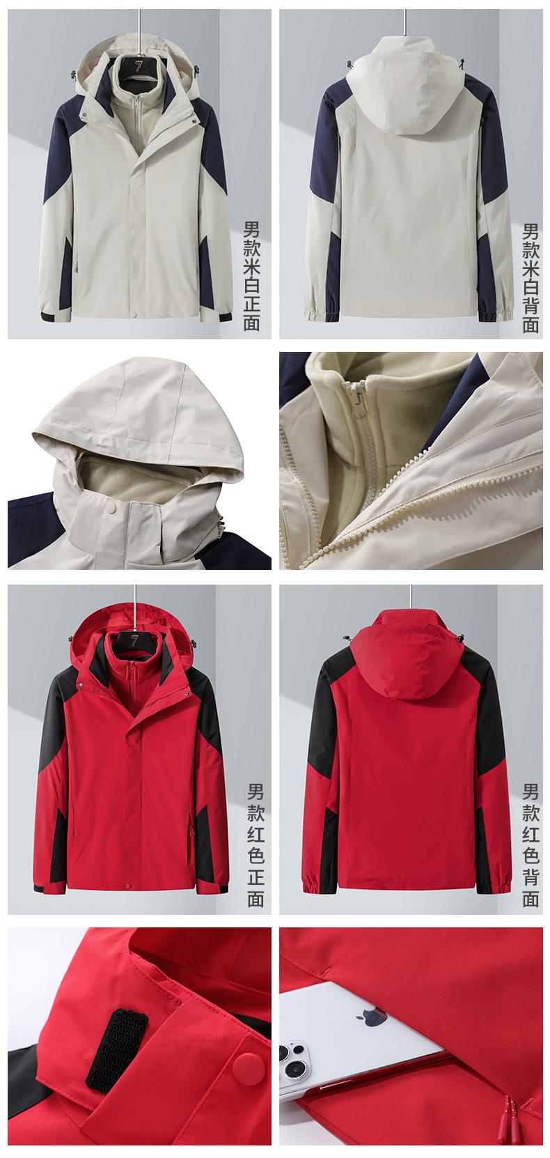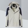 Conjunto de Duas Peças com Combinação de Cores para Jaqueta Externa Três-em-Um com Capuz, Corta-vento e Impermeável para Homens e Mulheres, Roupa de Montanhismo à Prova de Três Coisas