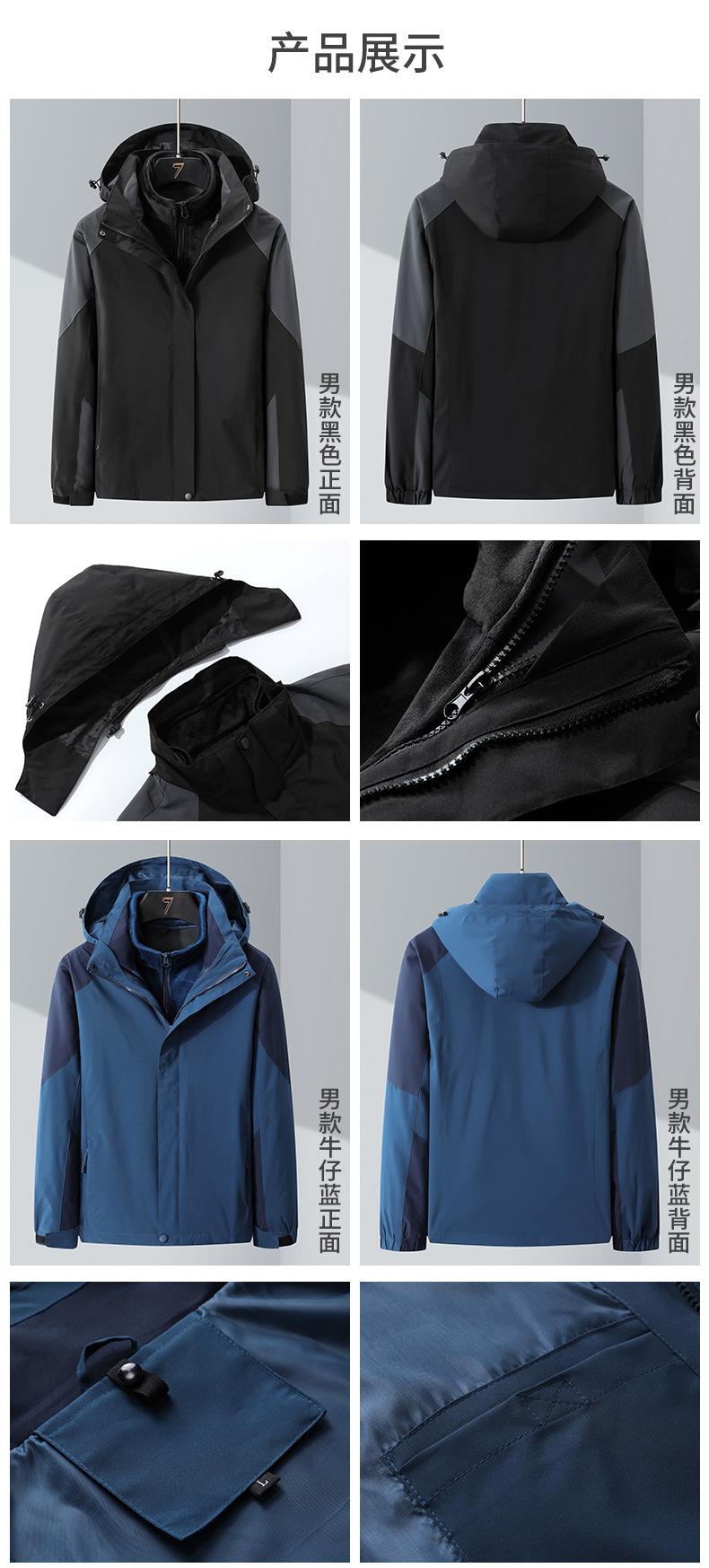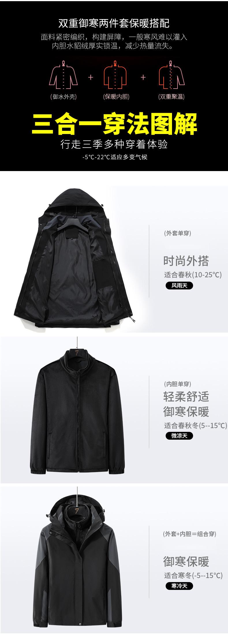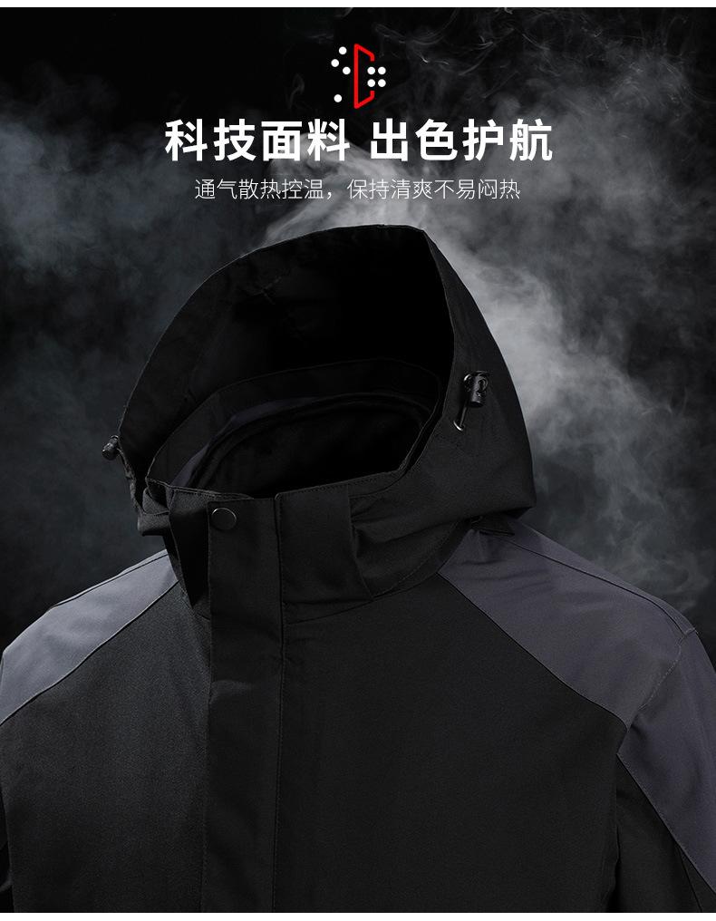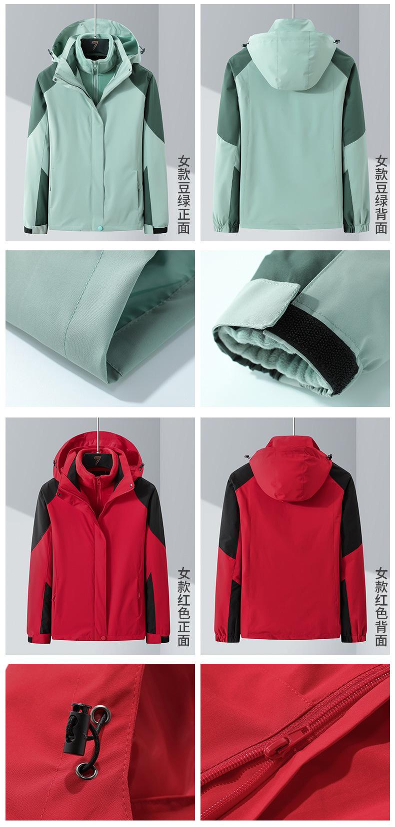 Conjunto de Duas Peças com Combinação de Cores para Jaqueta Externa Três-em-Um com Capuz, Corta-vento e Impermeável para Homens e Mulheres, Roupa de Montanhismo à Prova de Três Coisas