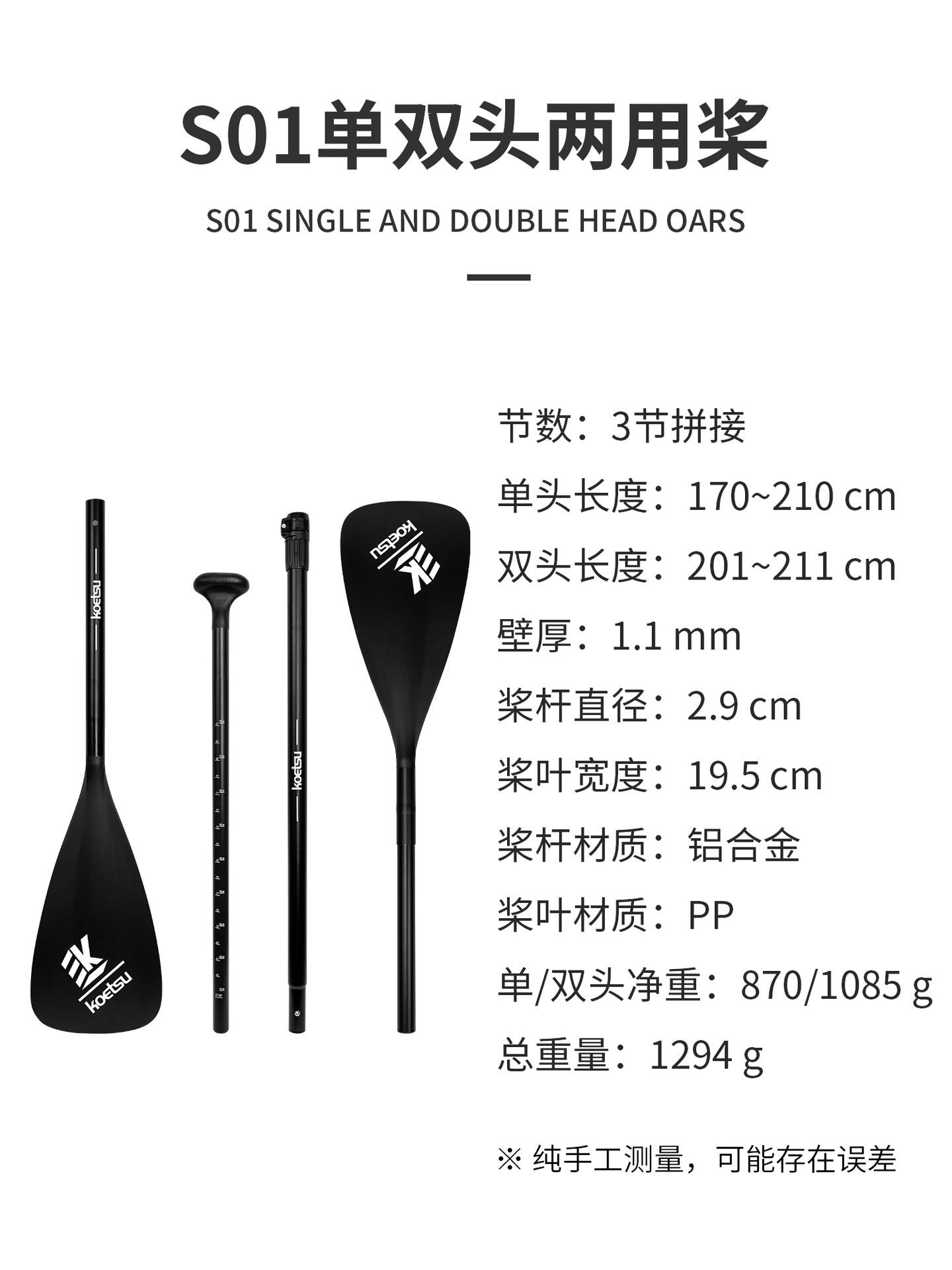 S01 remo de cabeça dupla dupla remo telescópico SUP remo destacável conveniente liga de alumínio remo inflável caiaque remo
