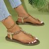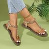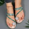 2024 Novas Sandálias de Verão Moda Feminina Calçado Exterior Sola Reta Sandálias Femininas Novos Chinelos de Praia Femininos Comércio Exterior