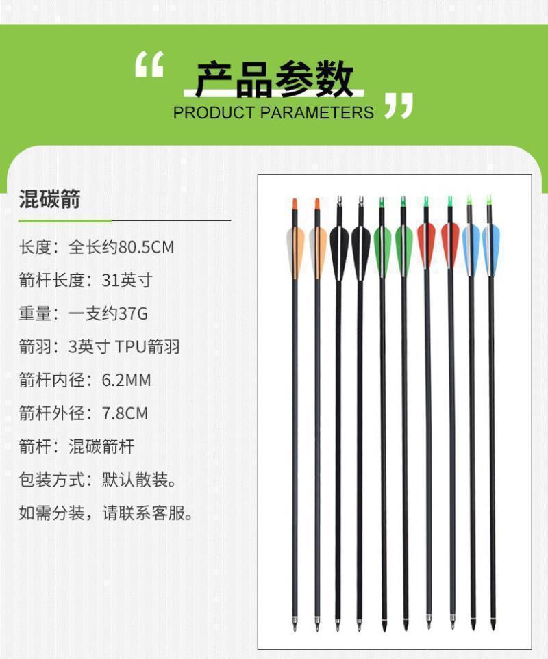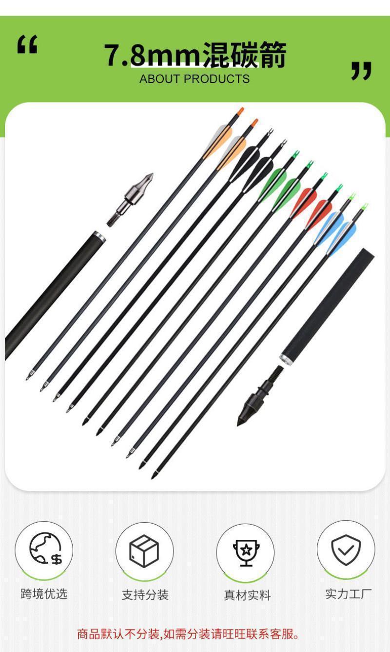 7.8mm mixed carbon arrow black and white 10 pieces, 7.8mm mixed carbon arrow red and white 10 pieces, 7.8mm mi...