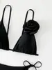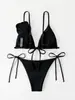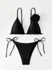 Novo maiô europeu e americano biquíni cor sólida sexy sling três pontos biquíni comércio exterior quente split maiô