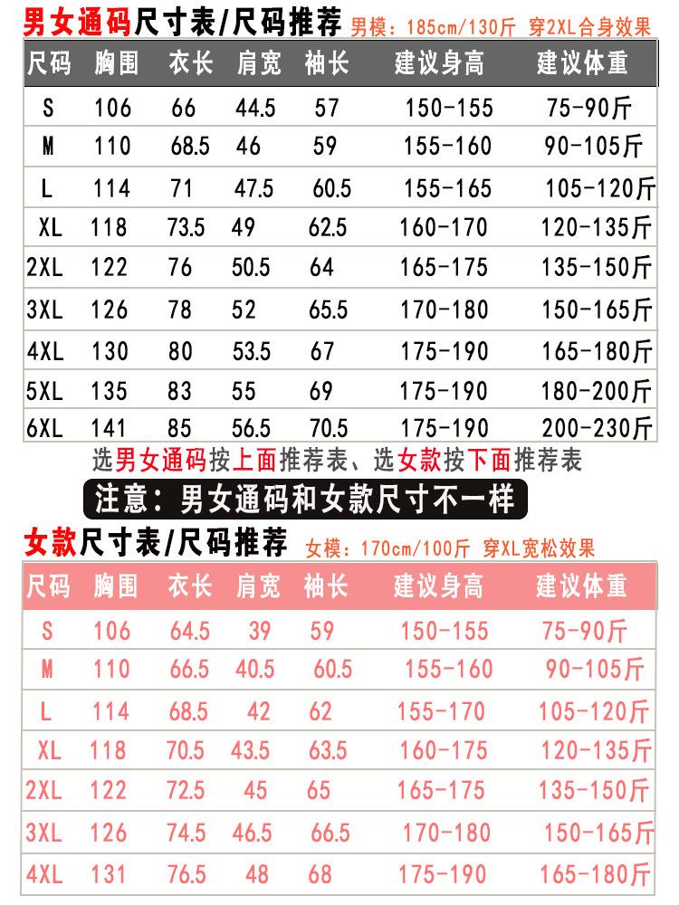 S, M, L, XL, 2XL, 3XL, 4XL, 5XL, 6XL