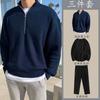 Suéter Pulôver Outono Meio Zíper para Homens, Estilo Coreano Moderno Versátil Gola Alta Top Tricotado Jaqueta, Fibra de Acetato Manga Longa