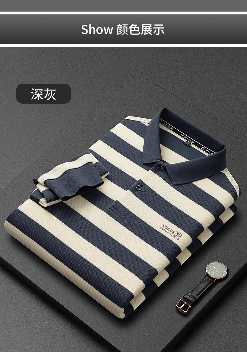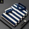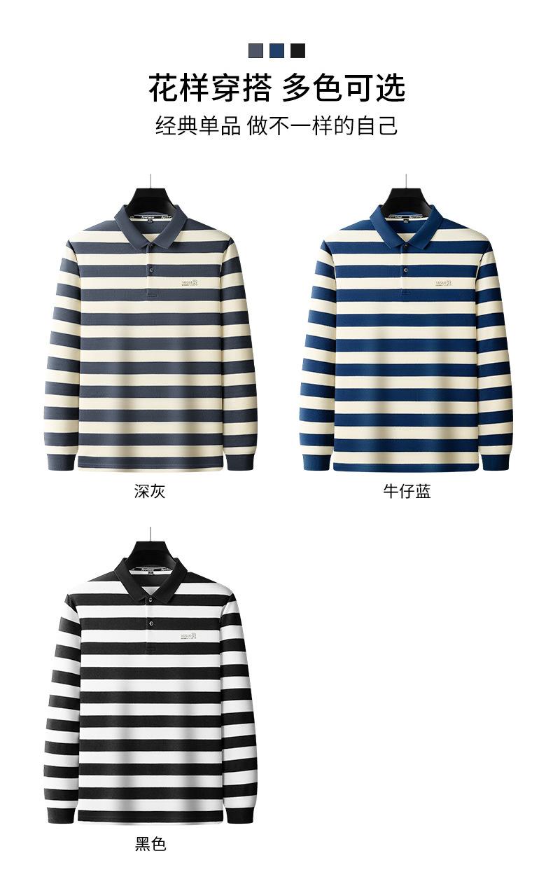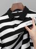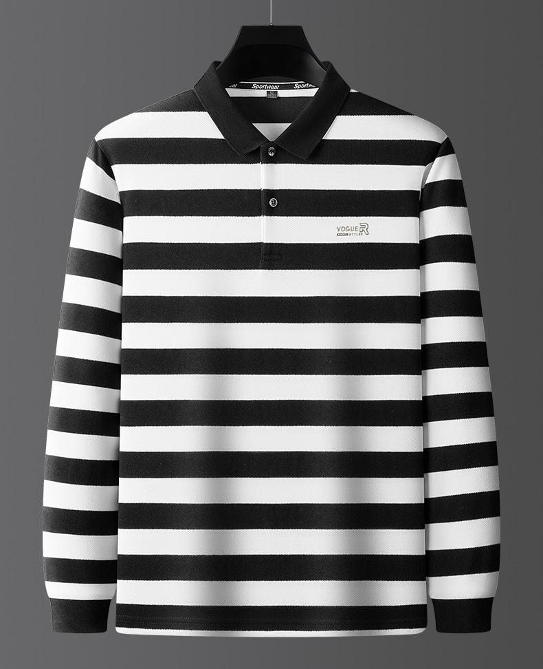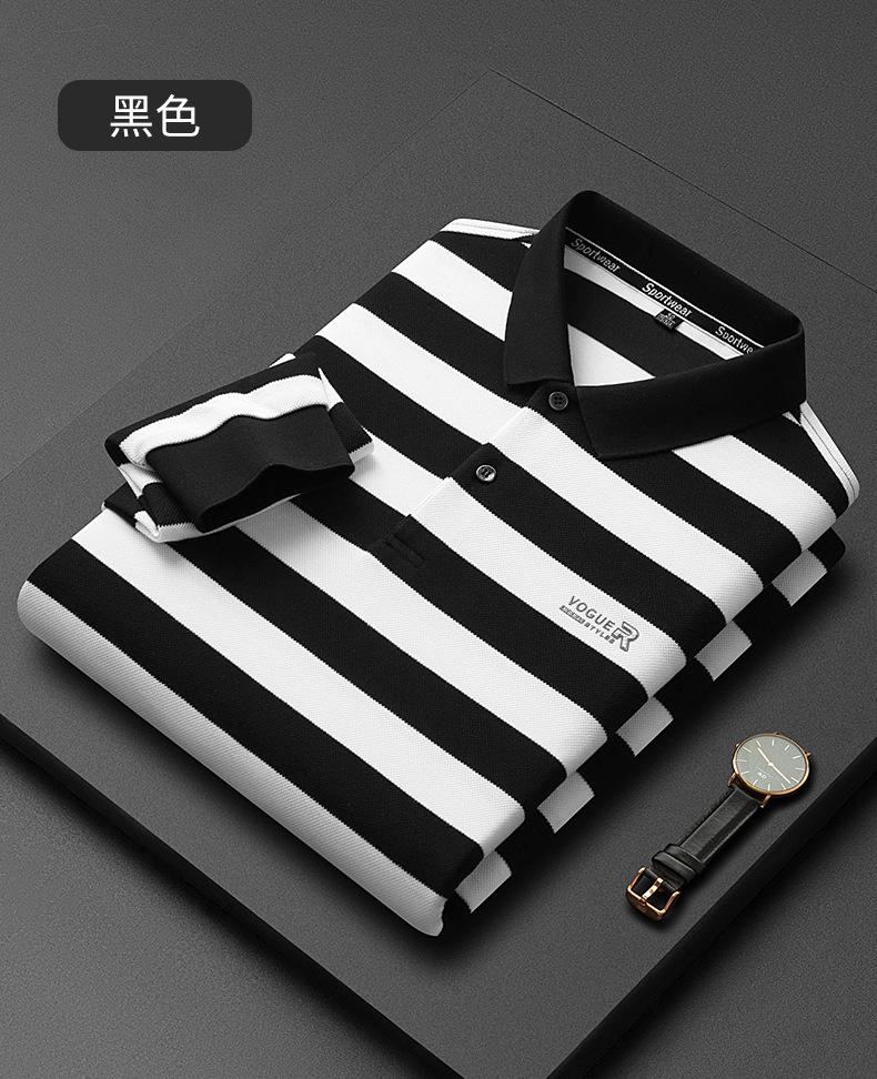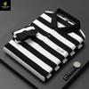 Paisenlong Camisa polo listrada masculina de negócios, preta e branca, manga comprida, com babados, estampa floral, camiseta casual