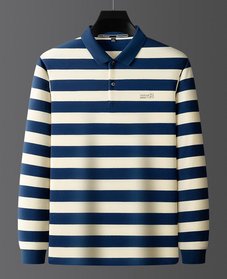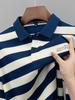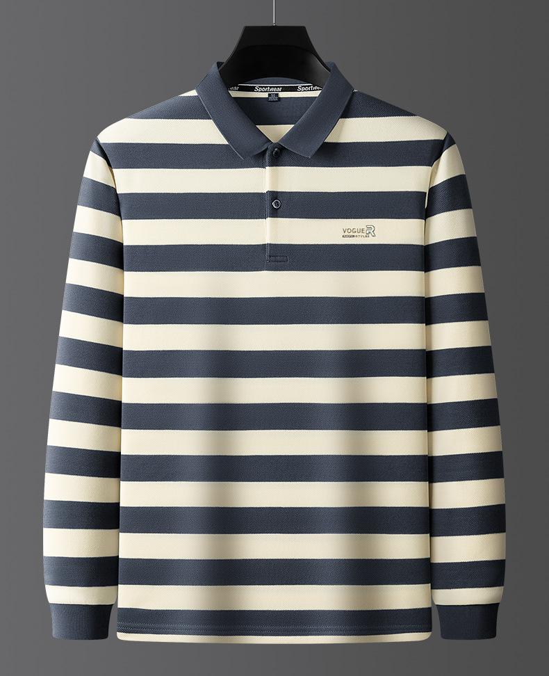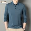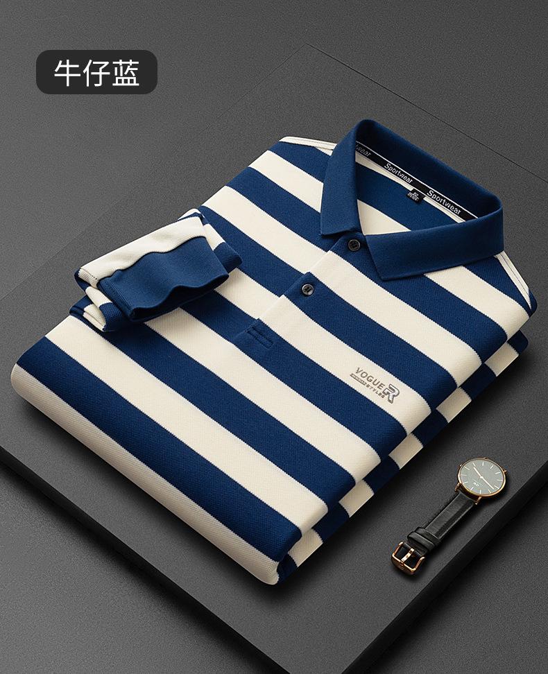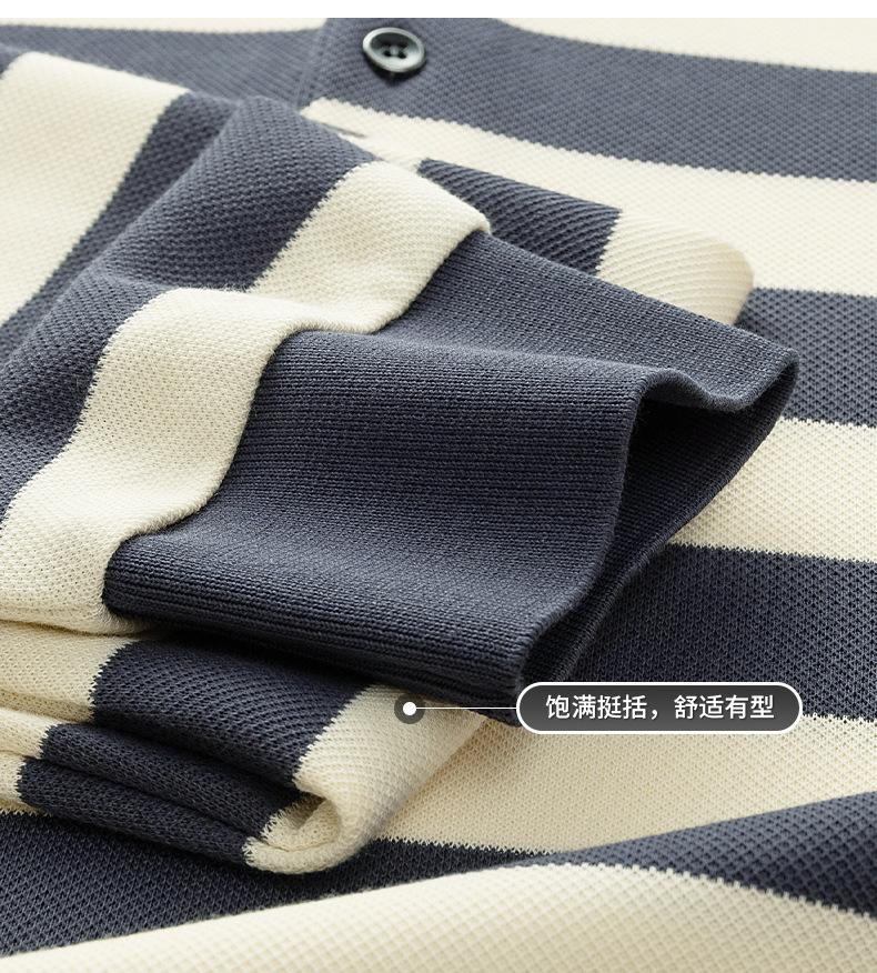 Paisenlong Camisa polo listrada masculina de negócios, preta e branca, manga comprida, com babados, estampa floral, camiseta casual