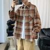 Camisa de Manga Longa Xadrez Masculina Primavera e Outono Solta Moda Coreana Cardigan de Estudante Jaqueta Camisa Xadrez Casual Retrô