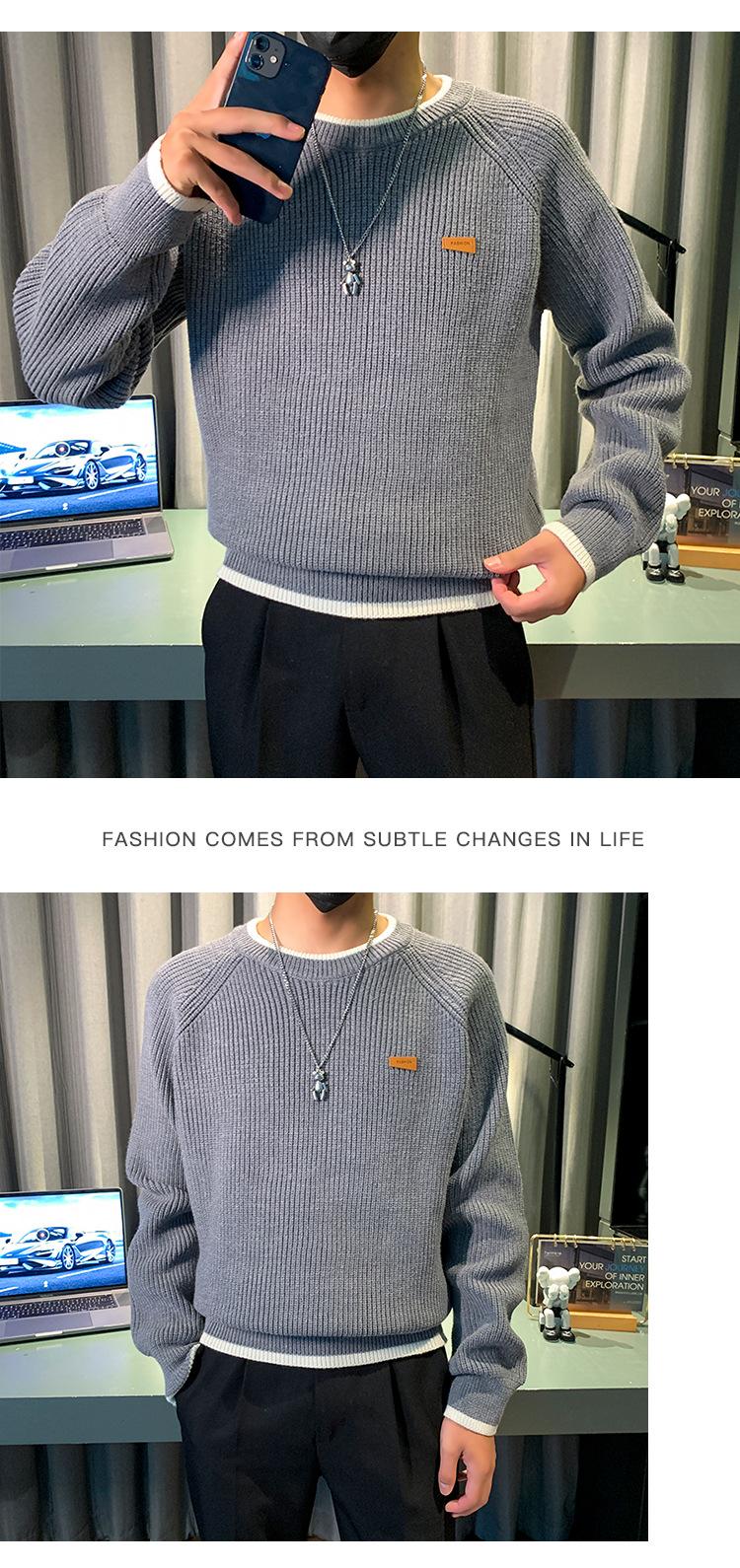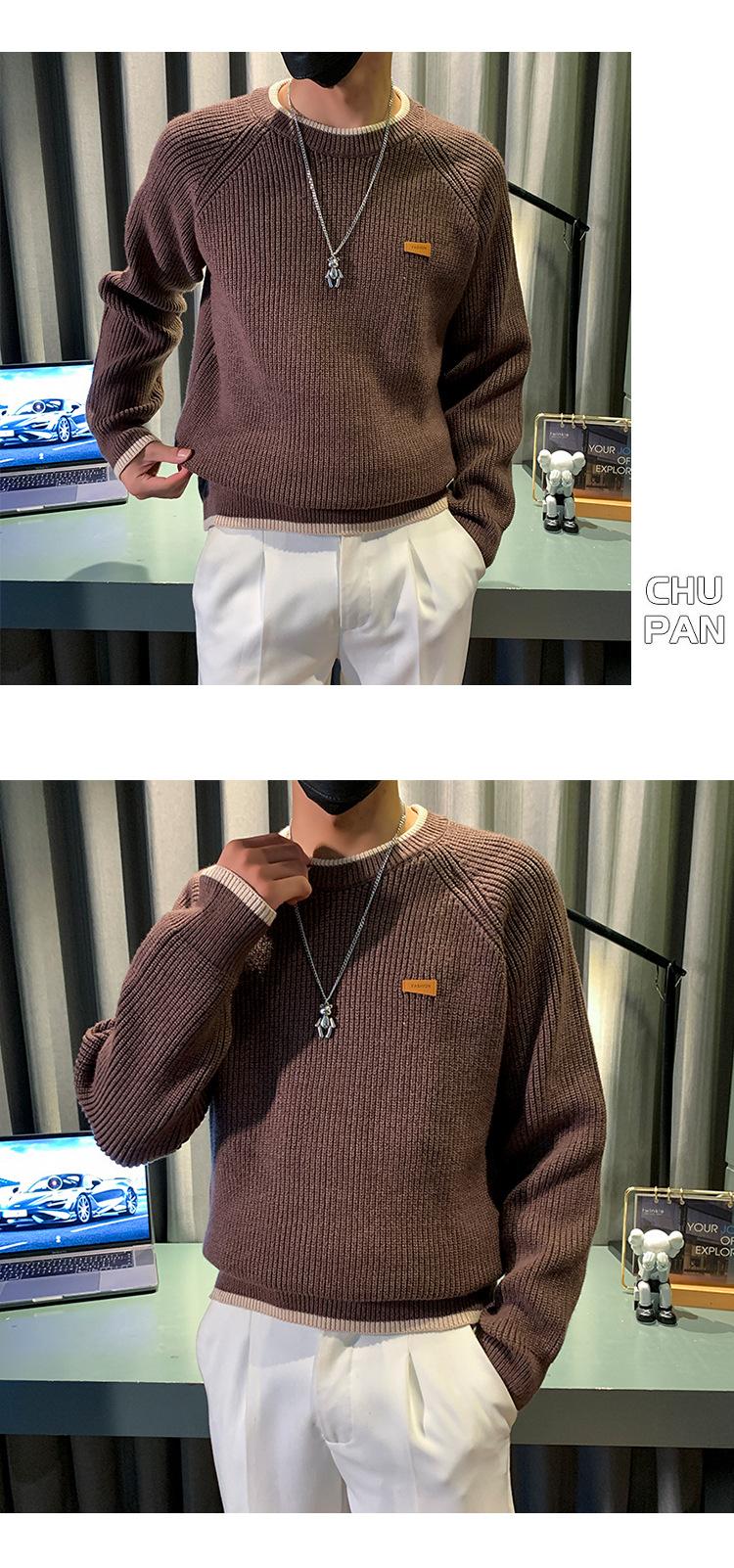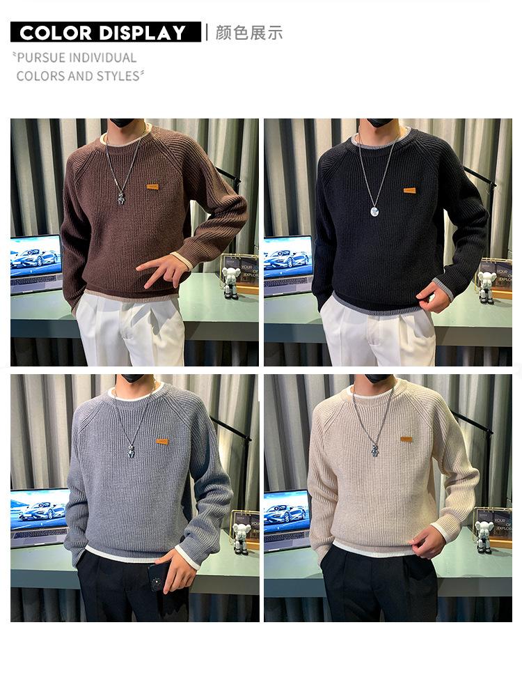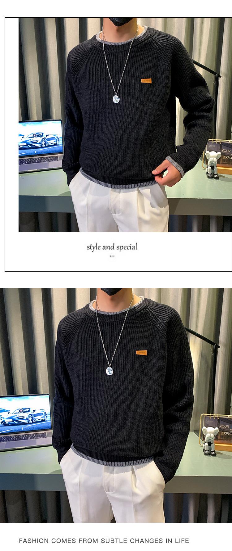 Compre 2024 outono e inverno moda nova marca moda suéter gola redonda casual cor combinando masculino cor contraste quente suéter no atacado no Joom.pro