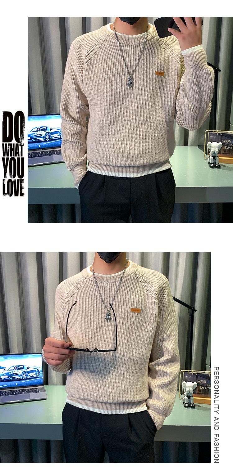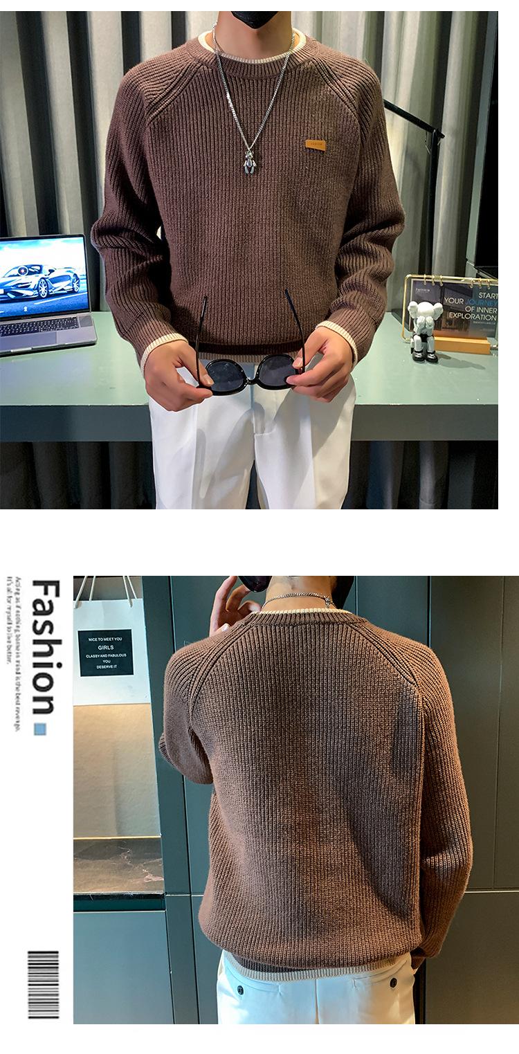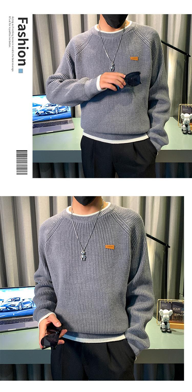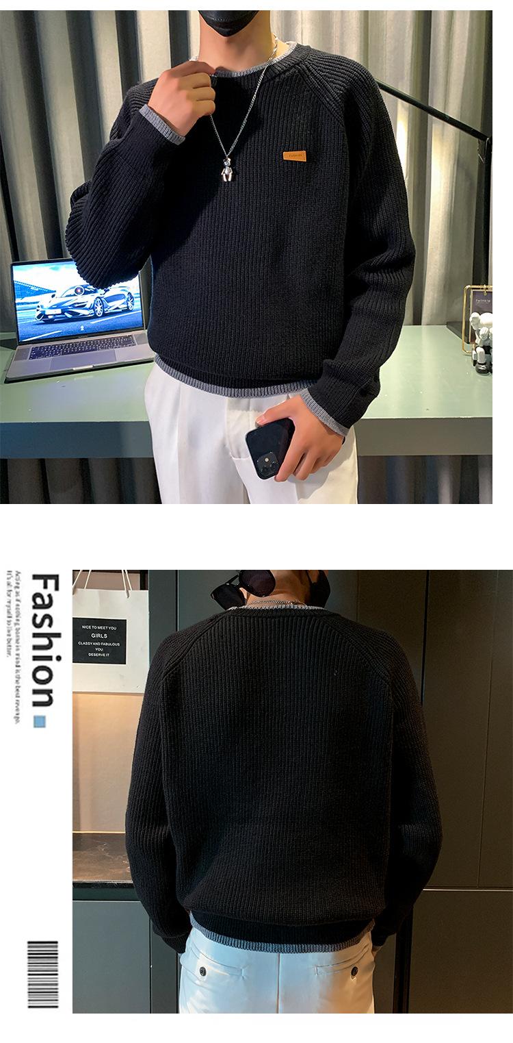 Compre 2024 outono e inverno moda nova marca moda suéter gola redonda casual cor combinando masculino cor contraste quente suéter no atacado no Joom.pro