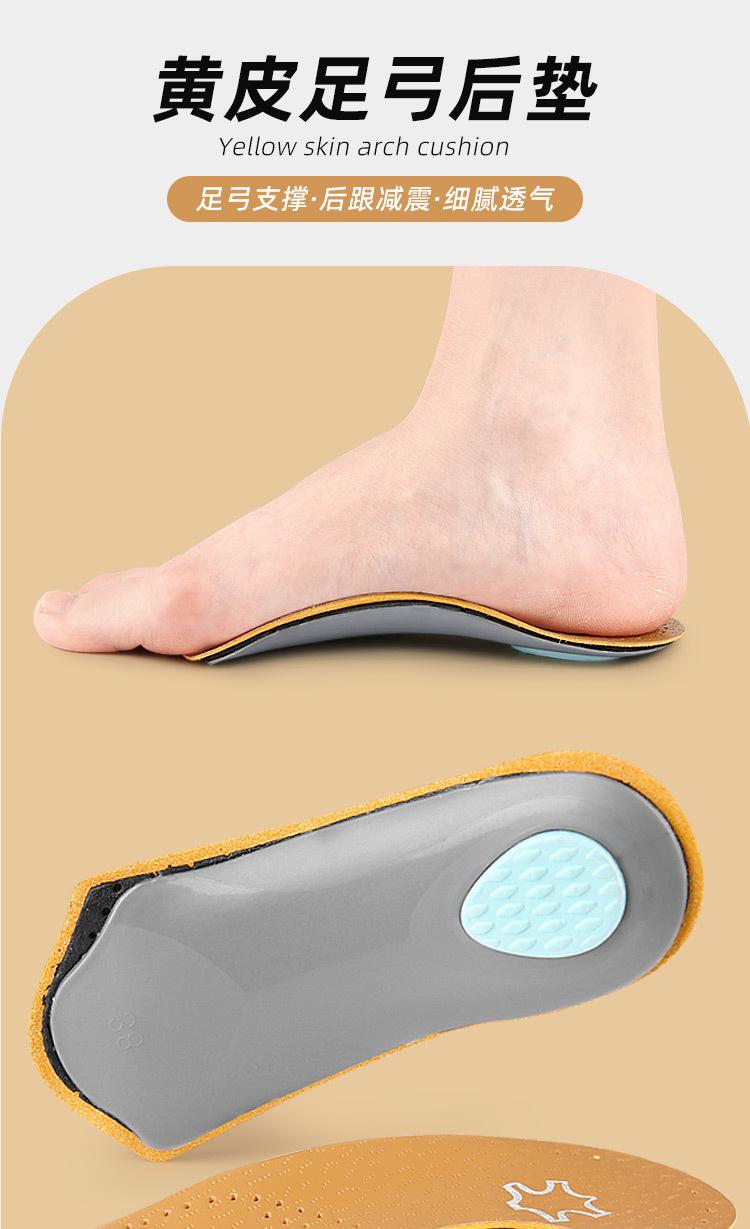 Palmilha de couro de vaca sintética para arco do pé, meia almofada, palmilha de couro de vaca, suporte para arco do pé plano, interno e externo, correção de perna em formato XO de oito caracteres