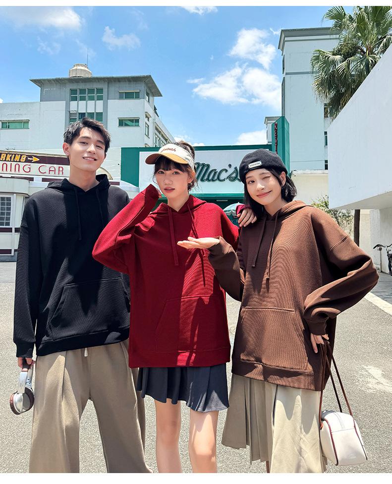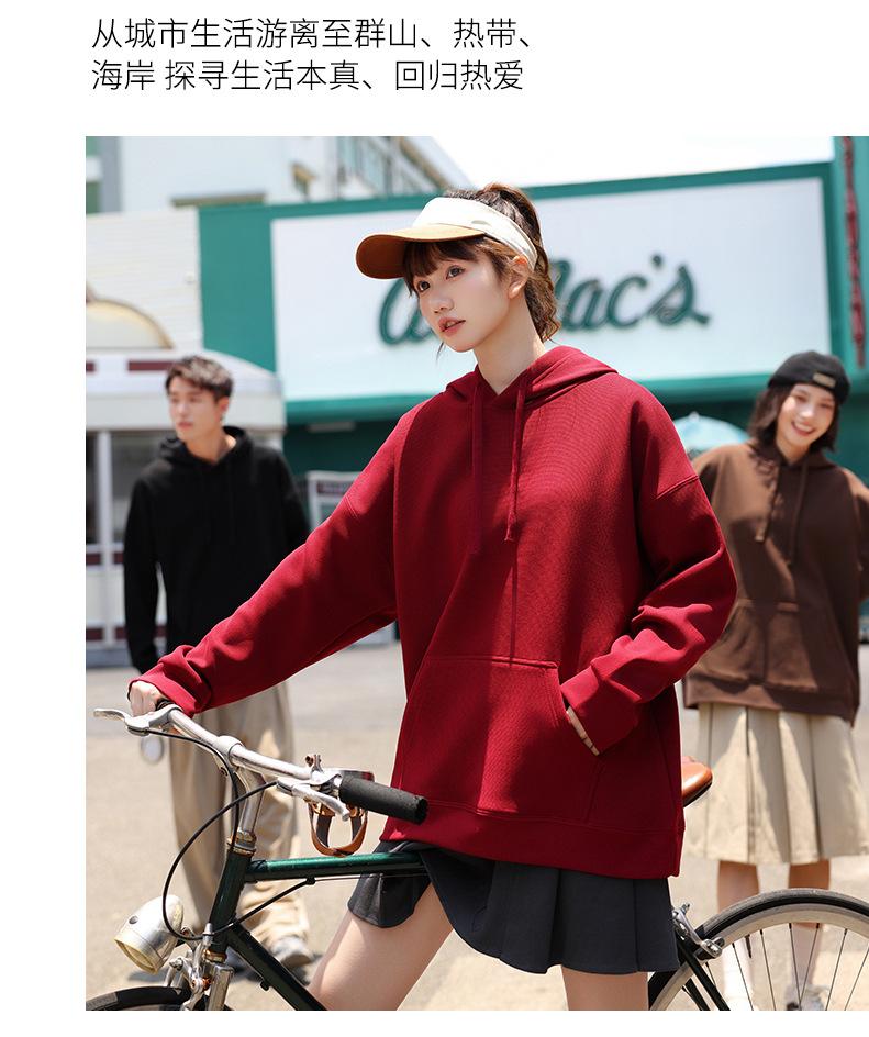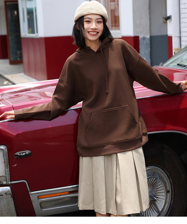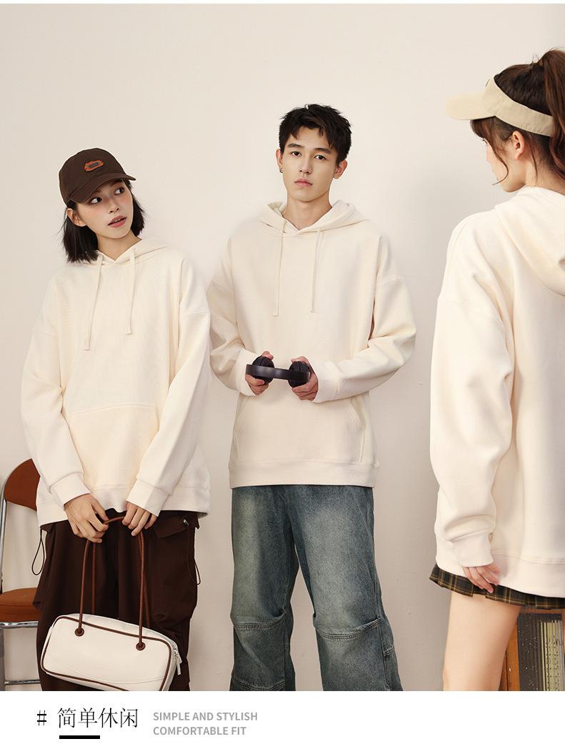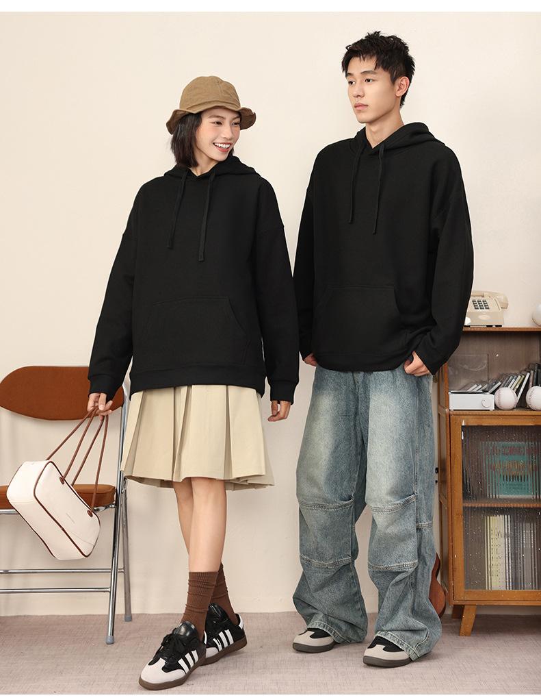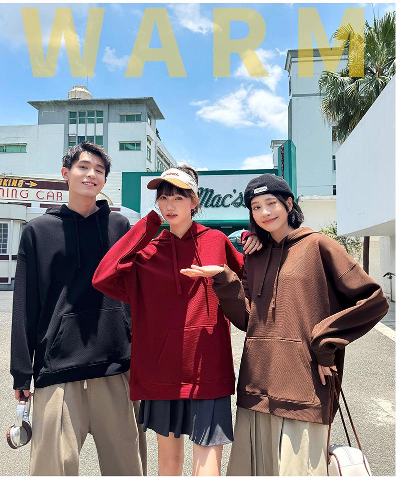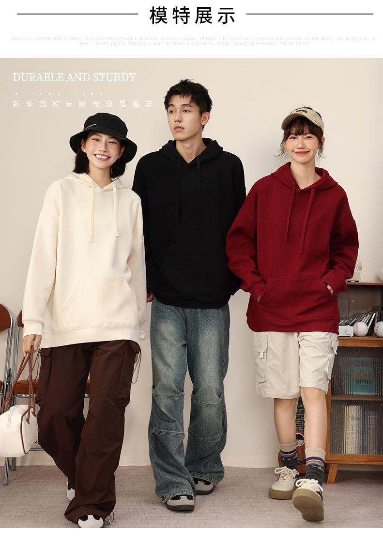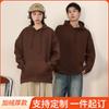 Suéter forrado de lã outono e inverno roupas de trabalho faça você mesmo roupas de aula casaco com capuz ombro baixo manga comprida logotipo impresso