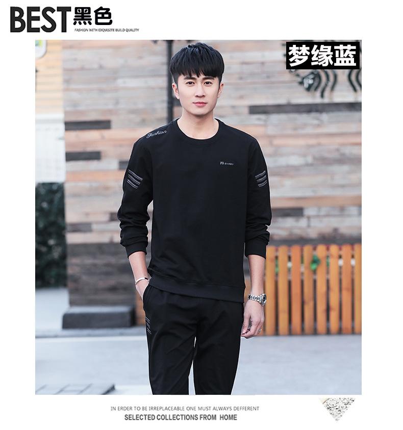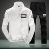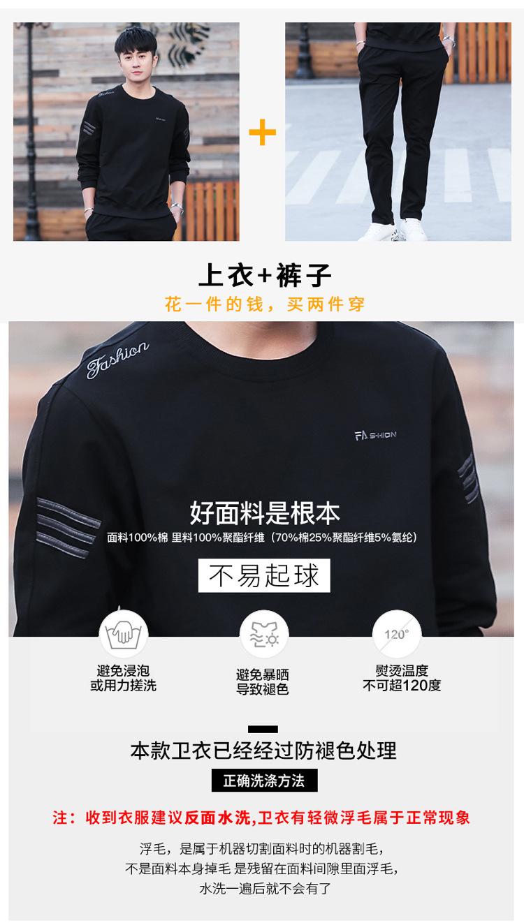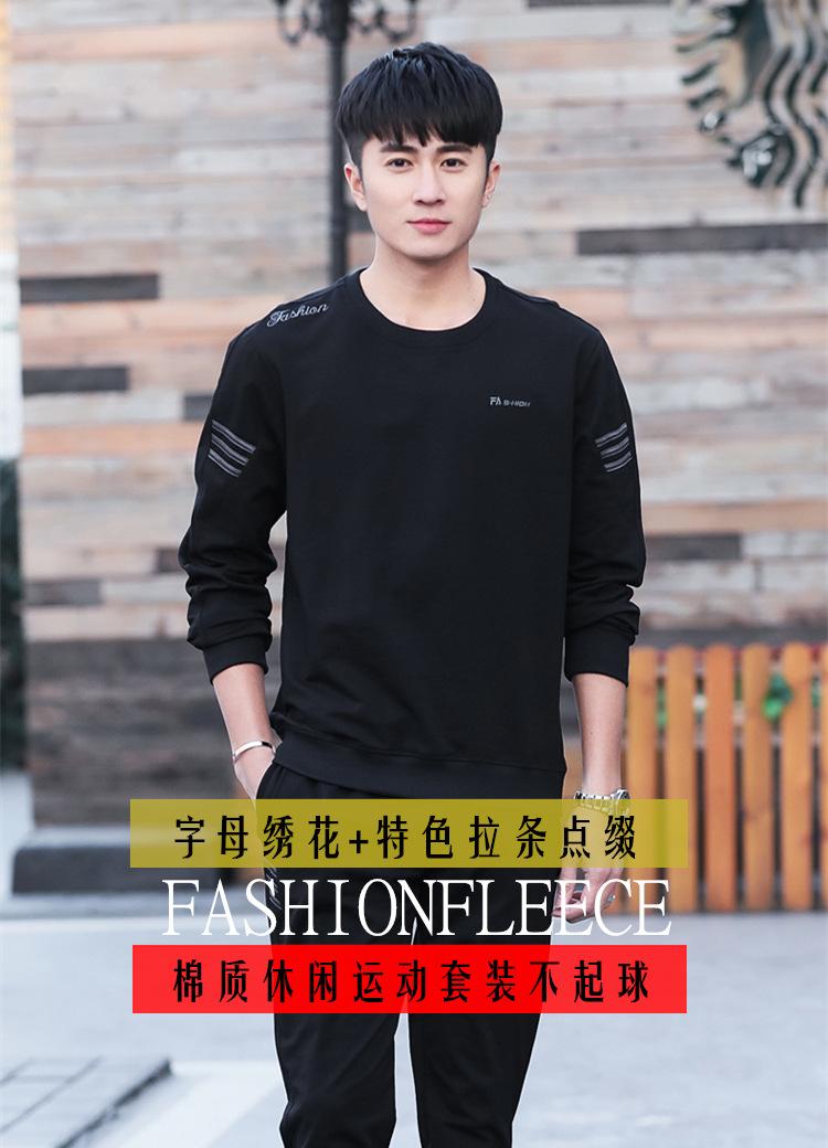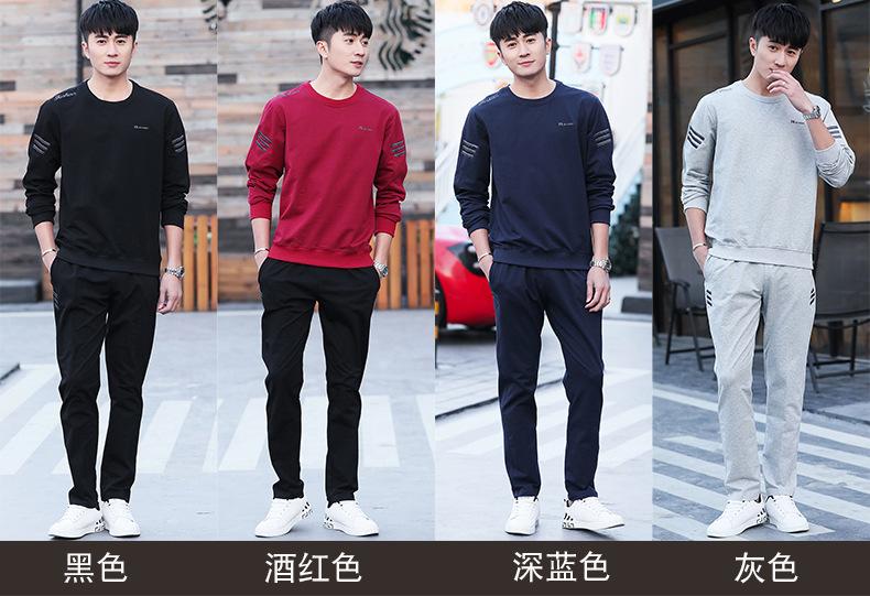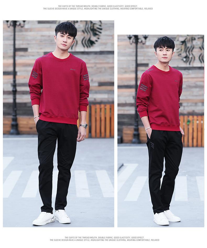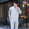Conjunto Esportivo Casual de Algodão Masculino de Primavera e Outono com Bordado de Letras, Gola Redonda, Manga Longa, Respirável, para Exterior, Casual