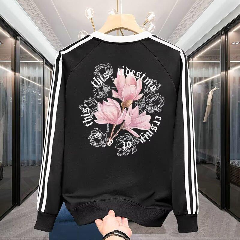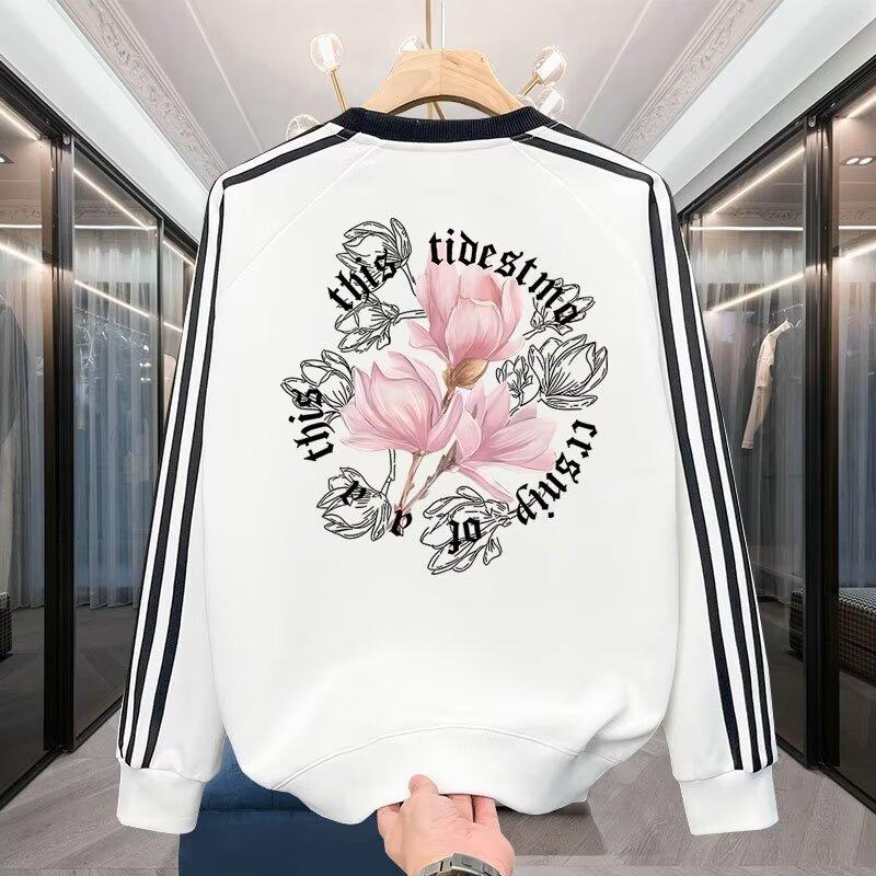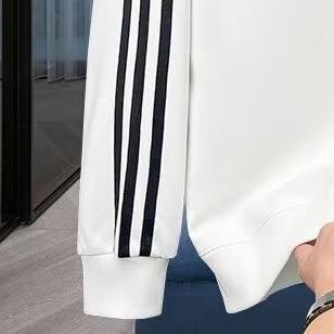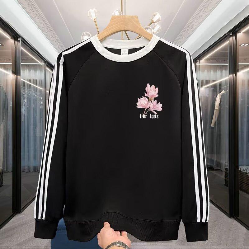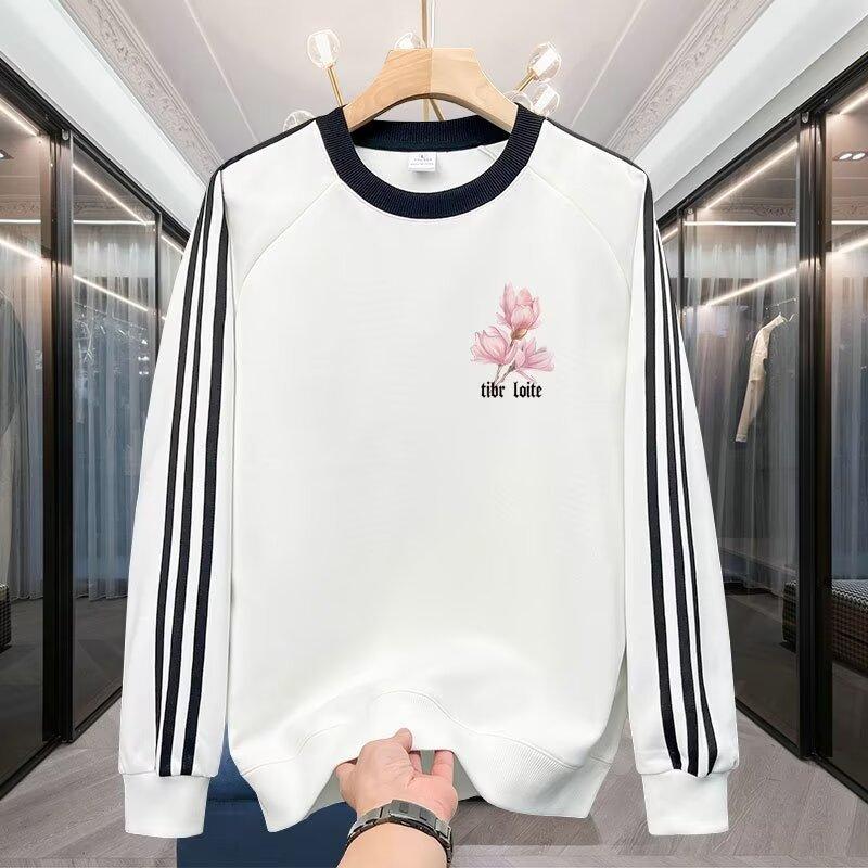 2024 Outono e Inverno Novo Três Barras Manga Raglan Masculino Gola Redonda Solto Top Moda Estampado Moletom