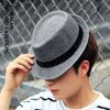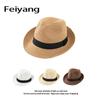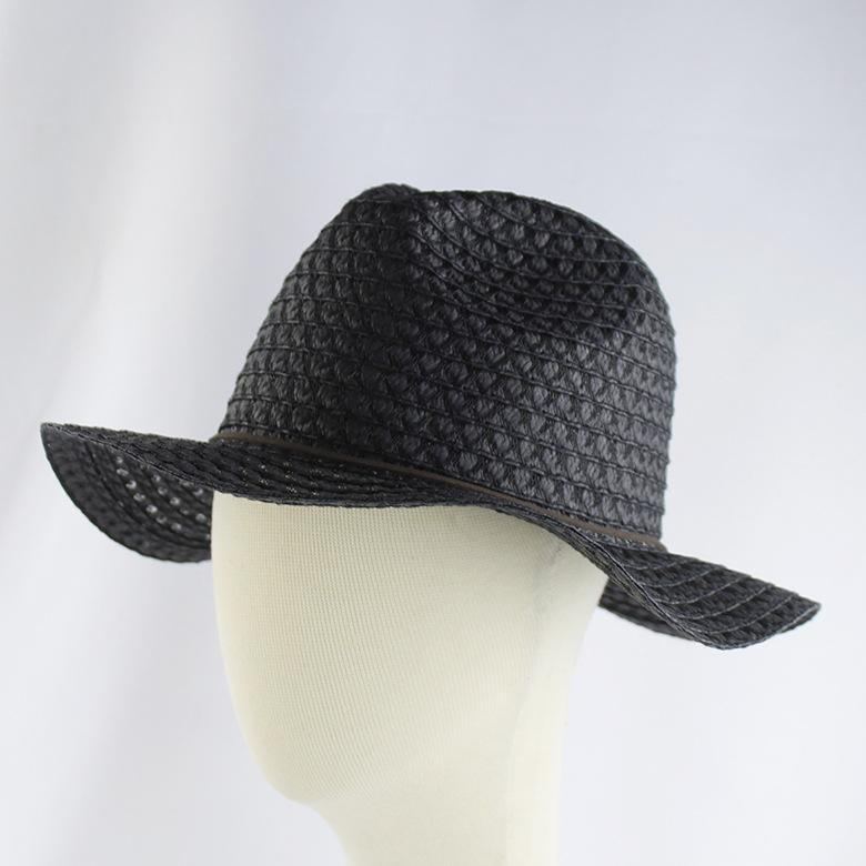 Chapéu pequeno respirável, chapéu de palha preto, chapéu de palha de aba plana para homens e mulheres, chapéu de jazz de praia estilo britânico personalizado