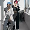Calças de moletom suéter primavera e outono terno feminino 2023 outono roupas femininas novo forro de lã engrossado idade-redução cor sólida gola redonda top