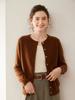 Novo Cardigan de malha de cashmere com decote redondo feminino casual elegante para deslocamento diário simples cor sólida manga comprida casaco com fivela