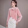 Elegante Top Rosa de Veludo Estilo Deusa de Alto Padrão com Laço, Top de Moda Outono Inspirado em Chanel, Novo Modelo 2026