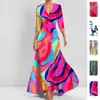 Moda Feminina Nova Primavera 2026 Europeu e Americano Transfronteiriço Vestido Elegante Cintura Marcada Slim Fit Estampado Decote V Longo