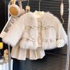 Jaqueta de pele sintética para meninas 2024 inverno nova jaqueta estilo chanel espessada e quente com saia forrada de lã