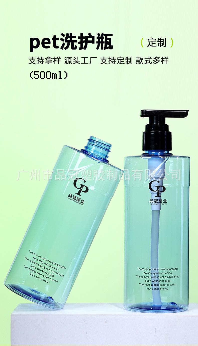 Frasco de xampu personalizado para animais de estimação 500ml Frasco de gel de banho com alça plana Frasco vazio Loção corporal Frasco de plástico transparente
