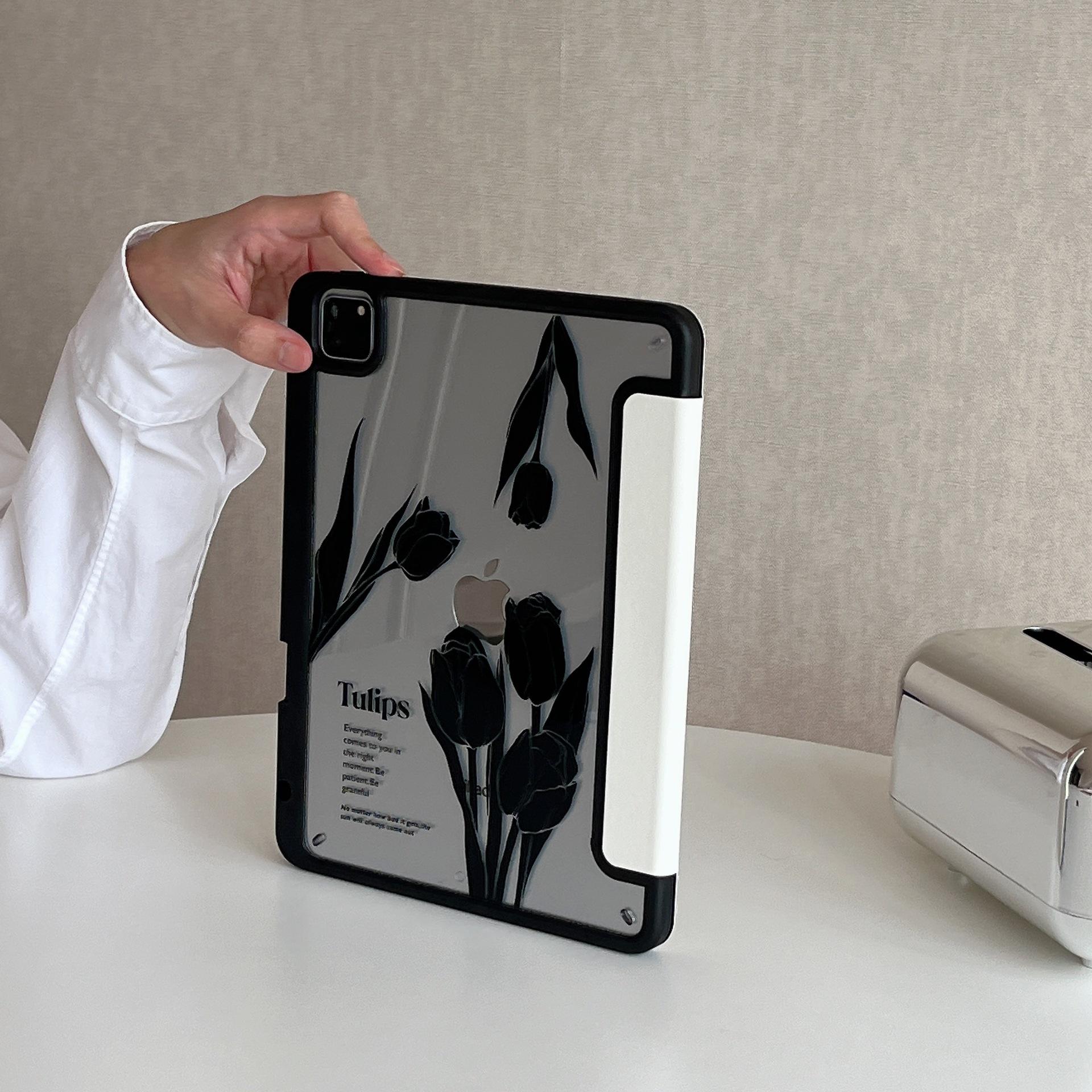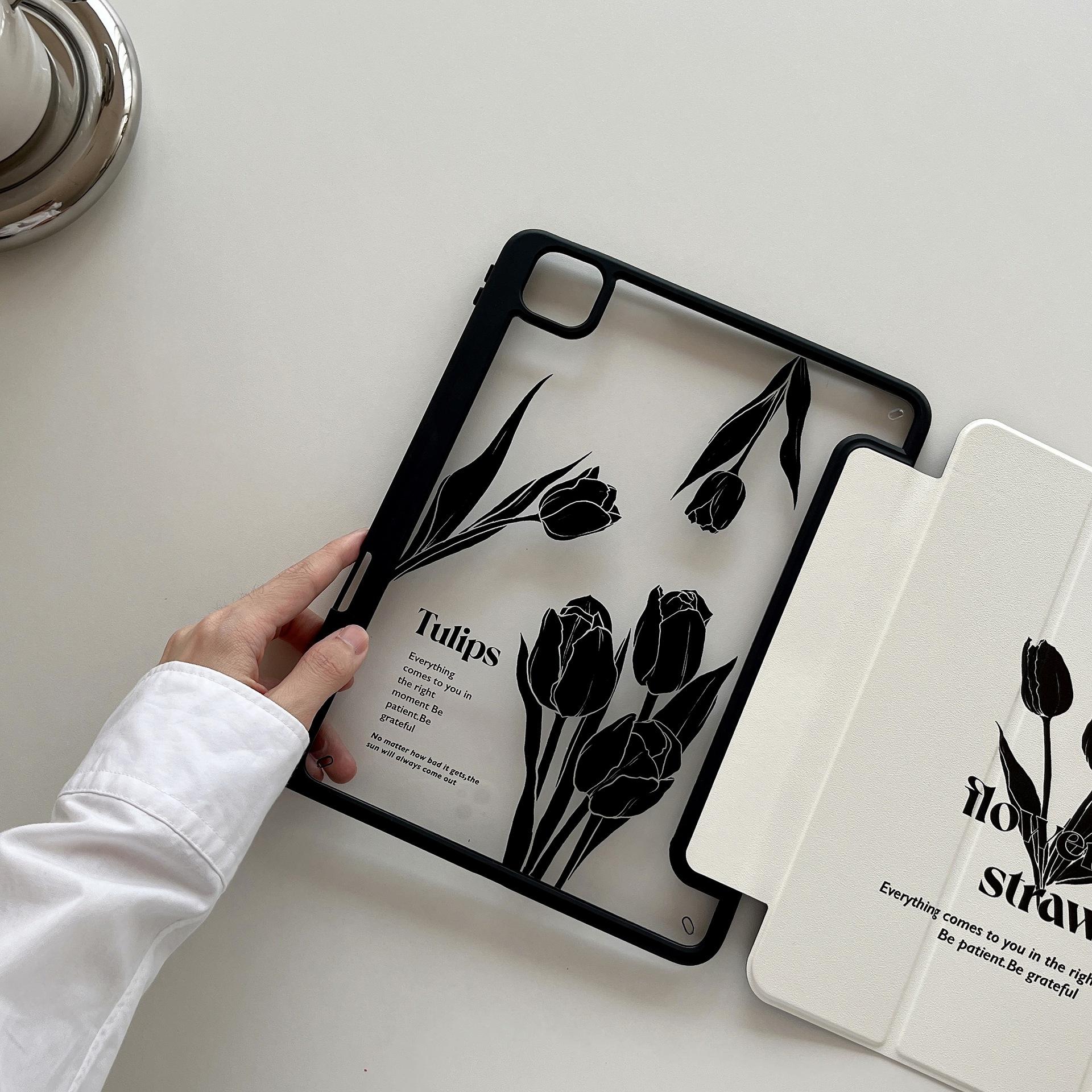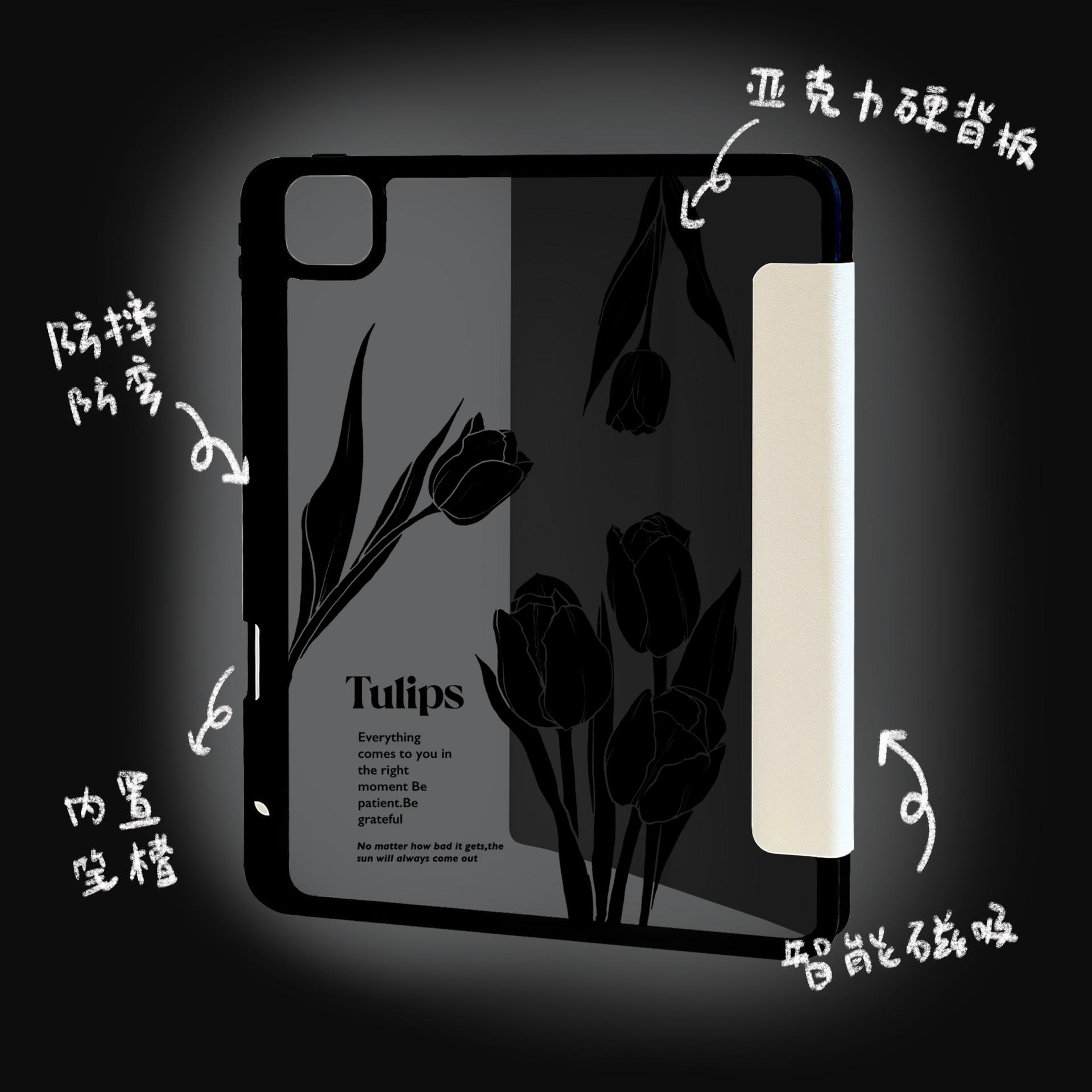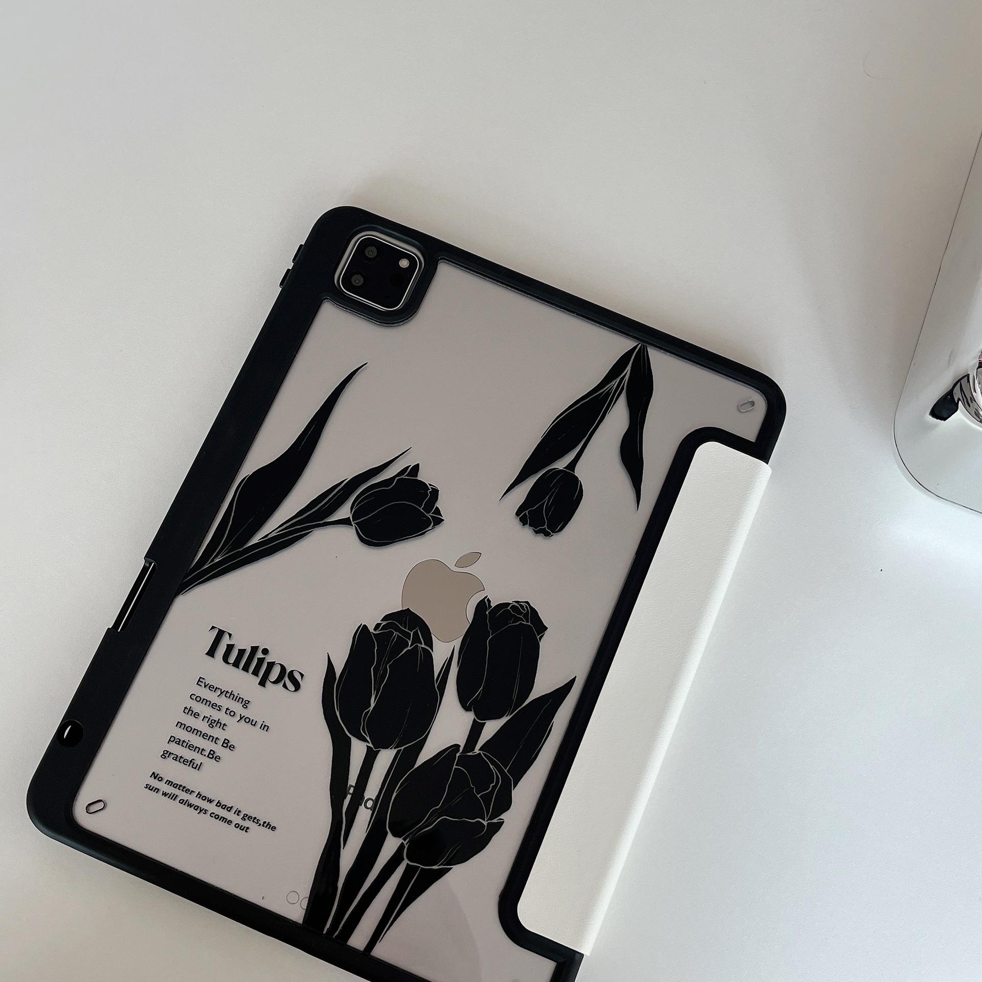 Adequado para iPad Air4/5 Apple tablet capa protetora iPad Air1/2 tablet magnético Tulipa Preta