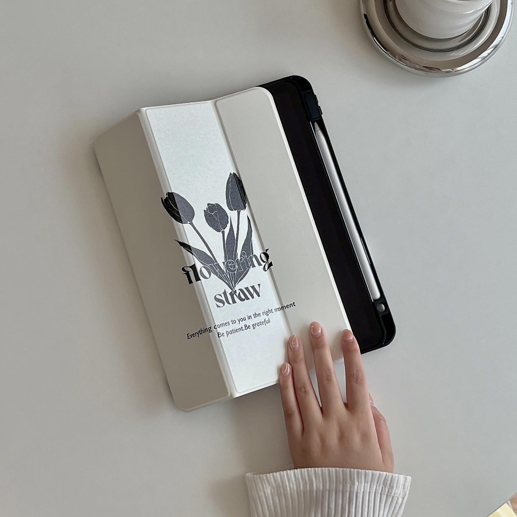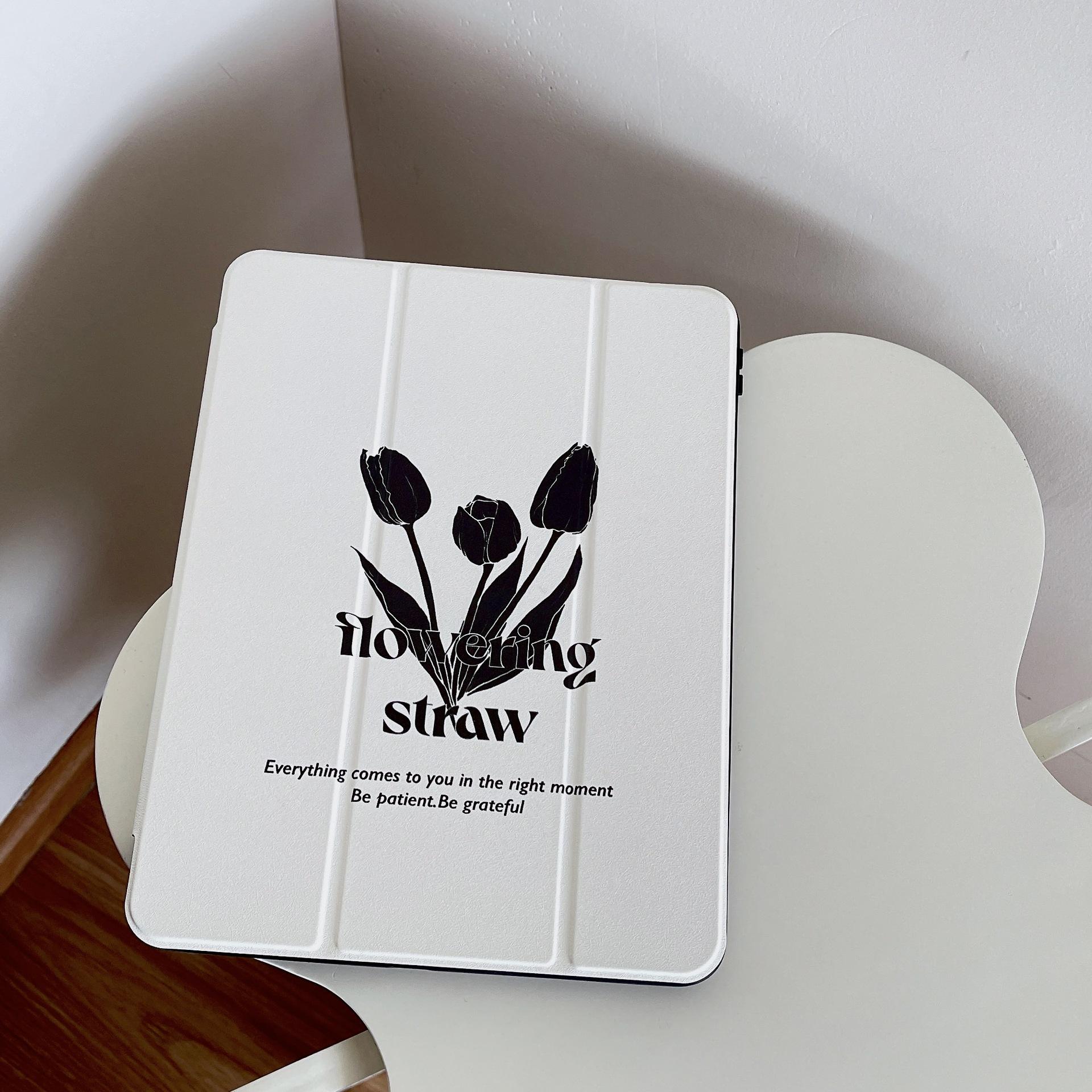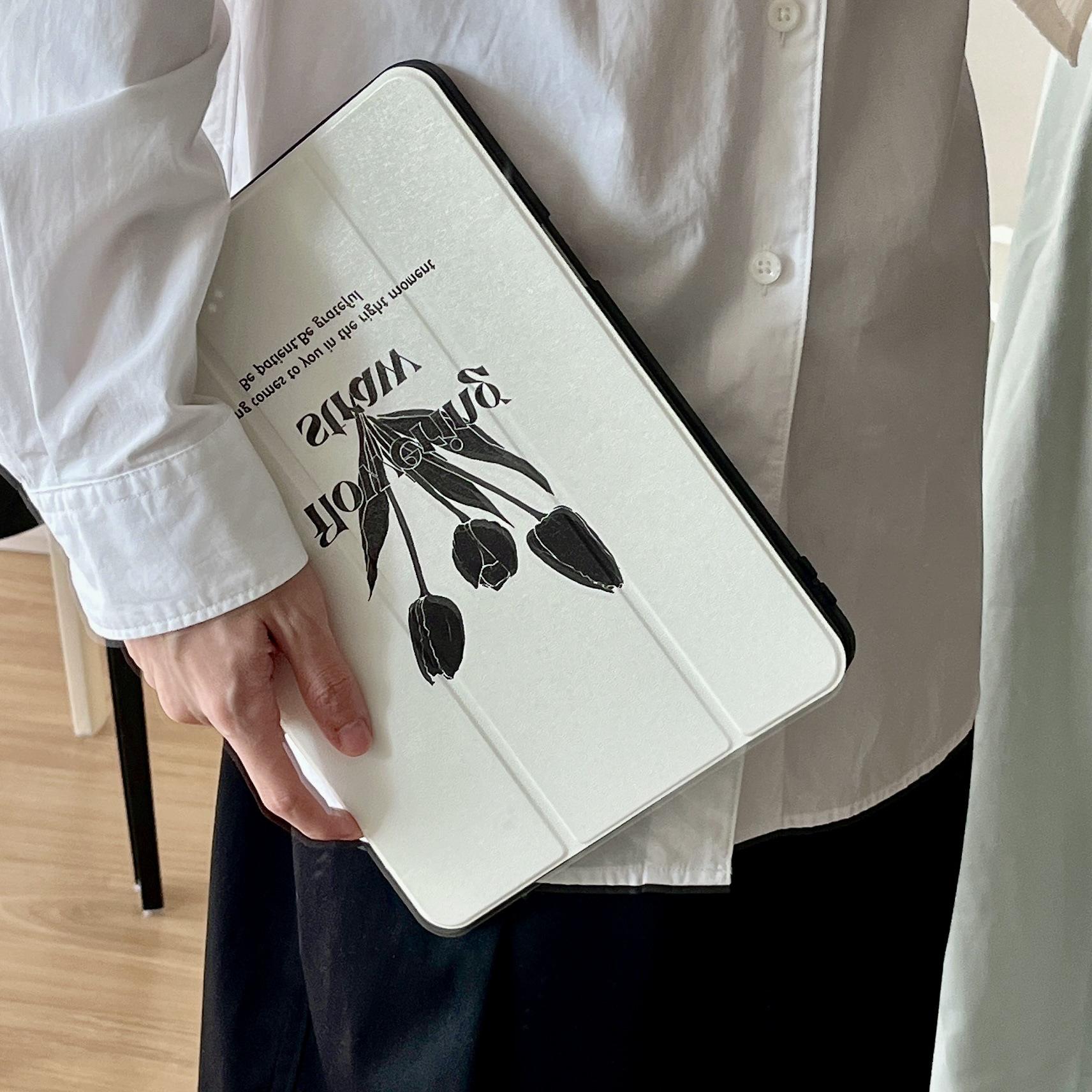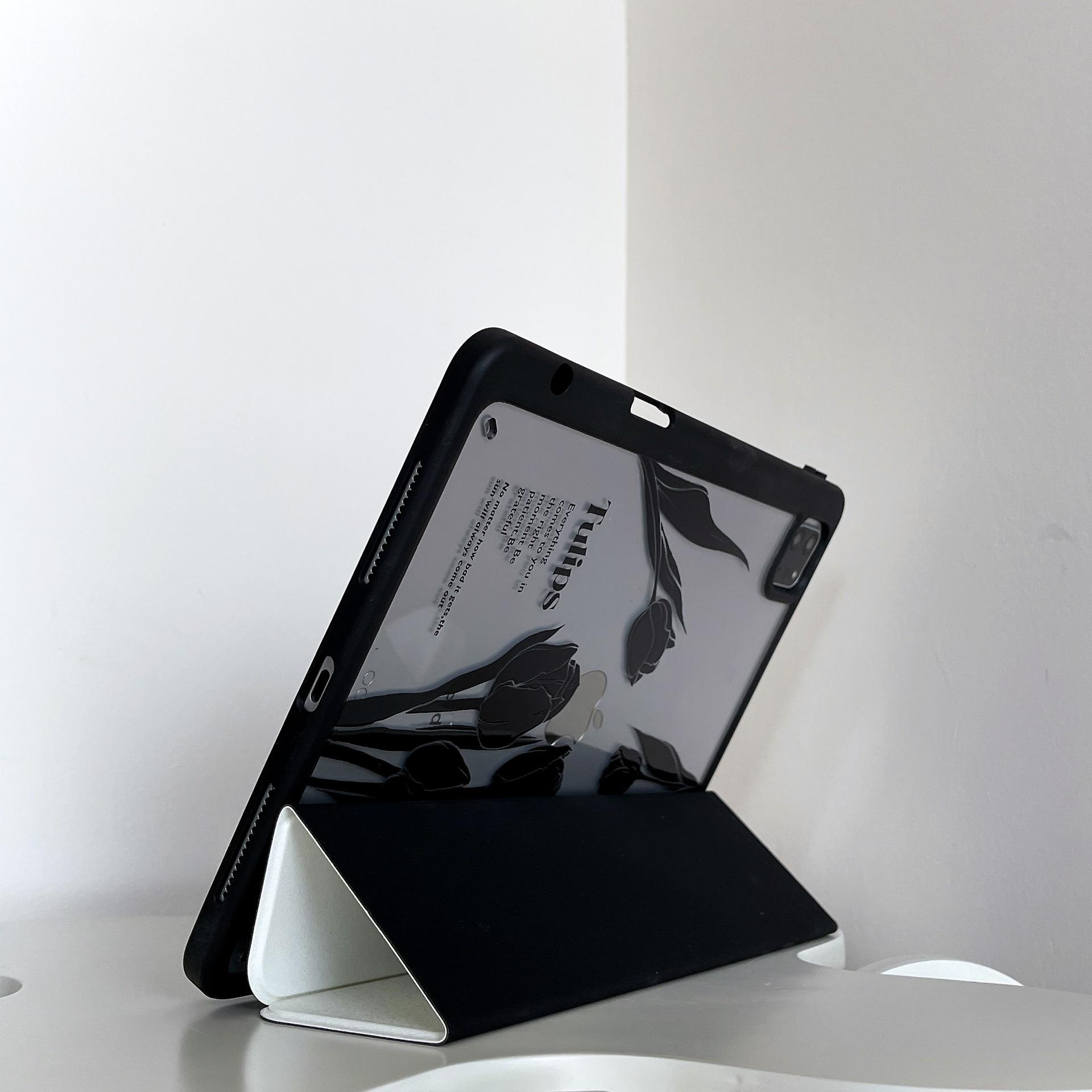Adequado para iPad Air4/5 Apple tablet capa protetora iPad Air1/2 tablet magnético Tulipa Preta