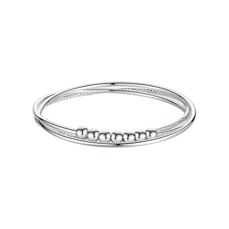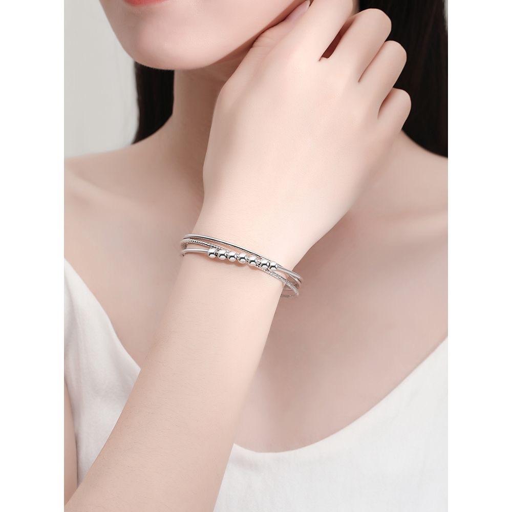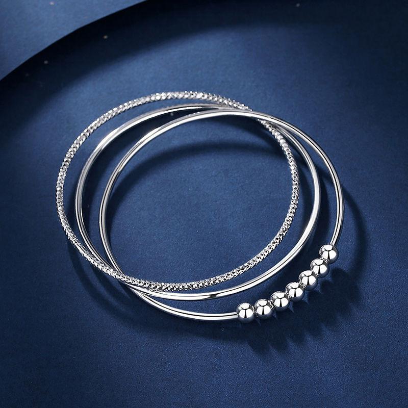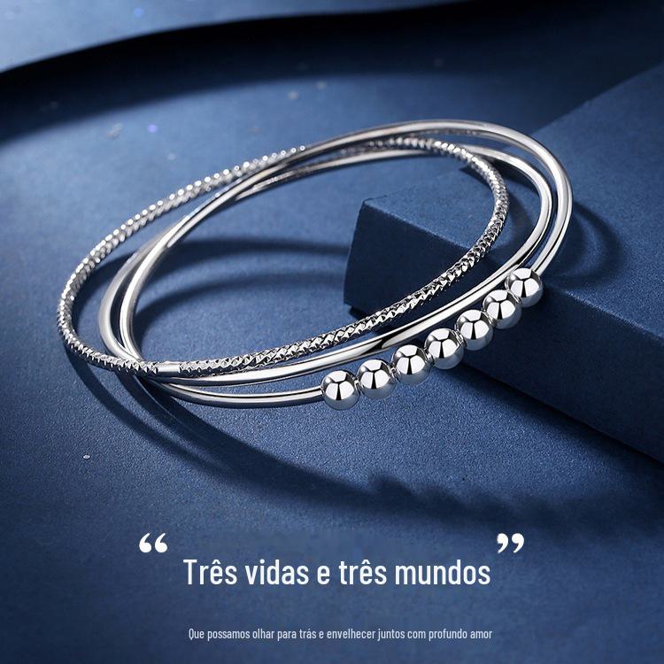Nova pulseira de contas de transferência Sansheng III para mulheres, três círculos, moda 999, pulseira de prata esterlina, presente simples para namorada