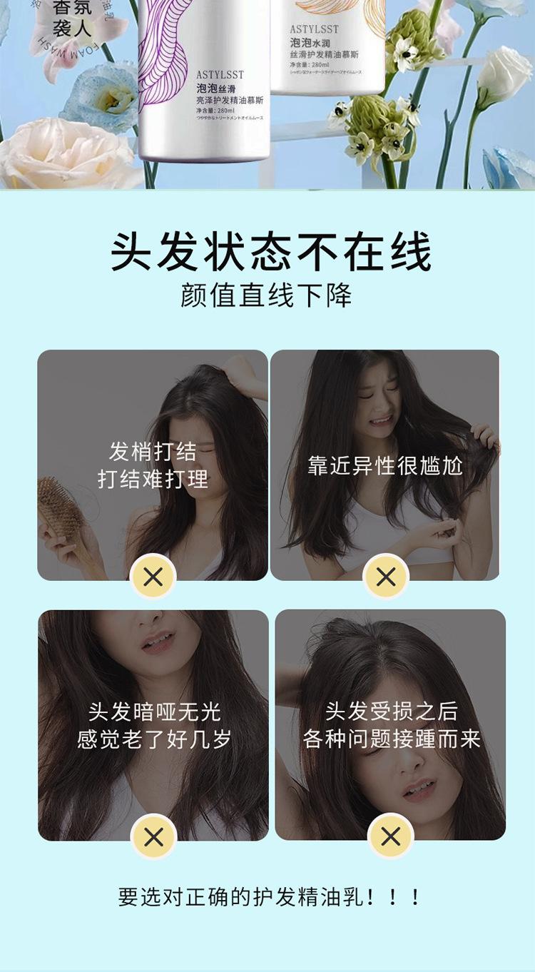 Hair Stylist Bubble Hair Care Óleo Essencial Mousse Hidratante Sedoso Brilhante Brilhante Cera Macia Mousse Espuma Cera para Cabelo