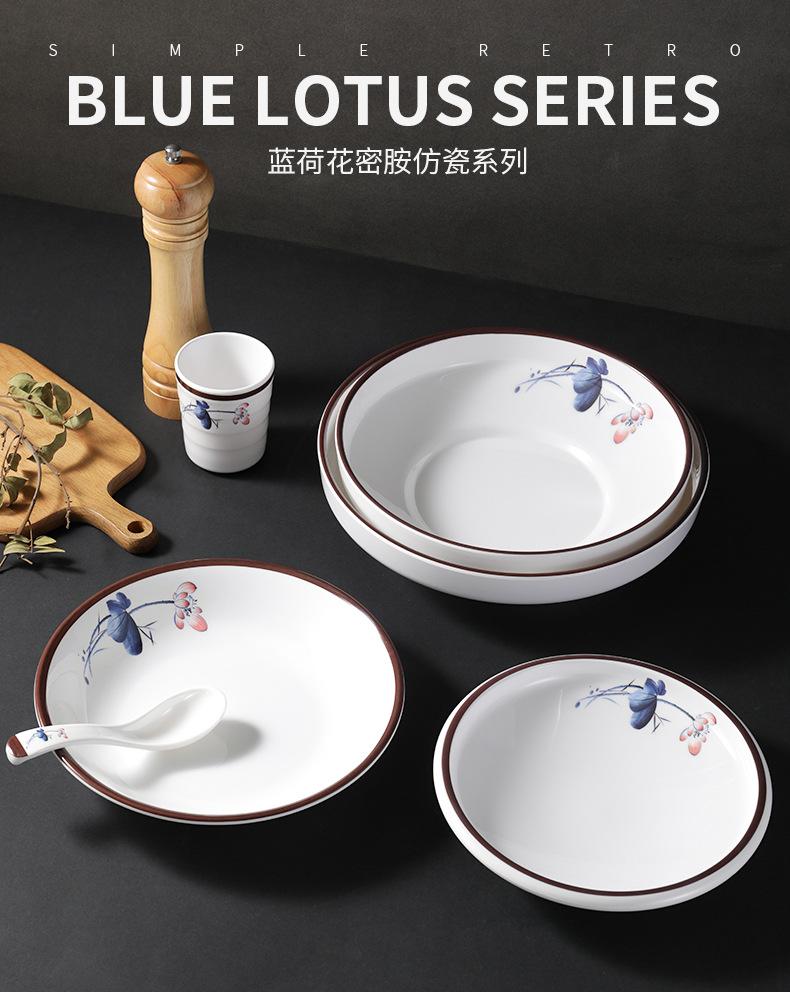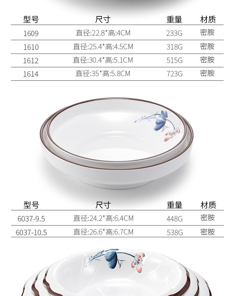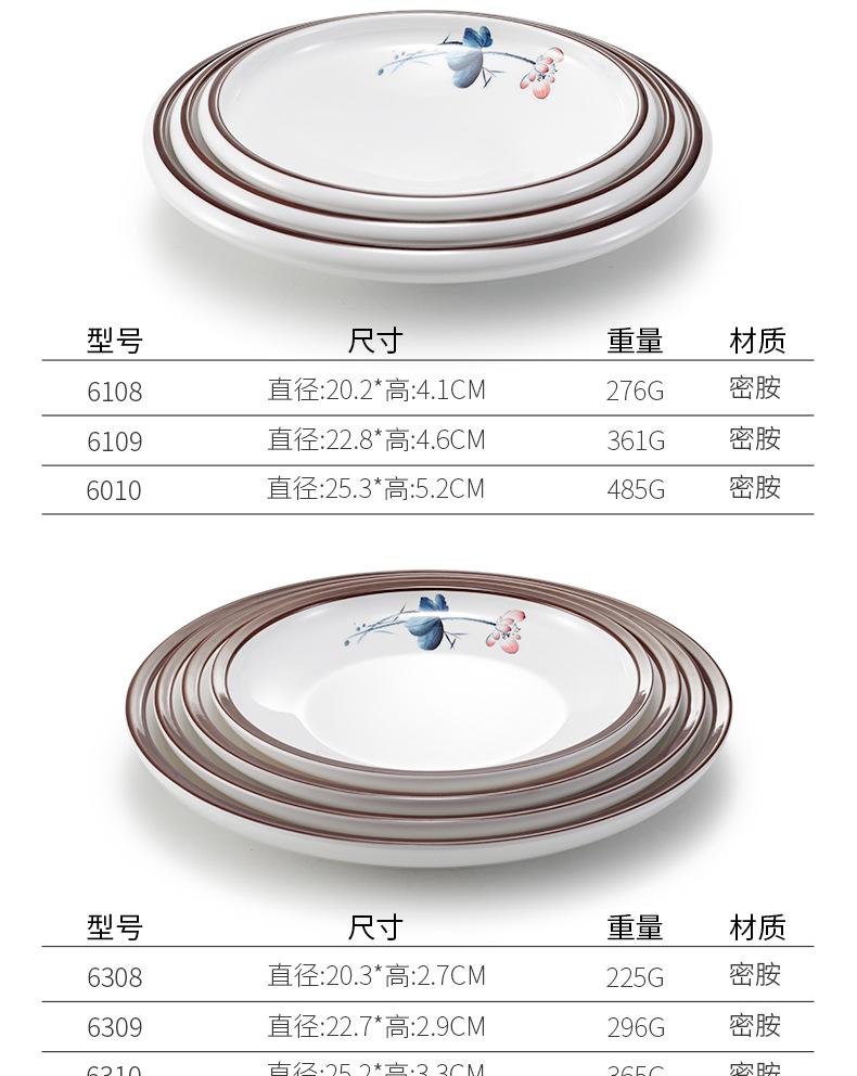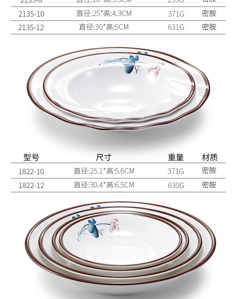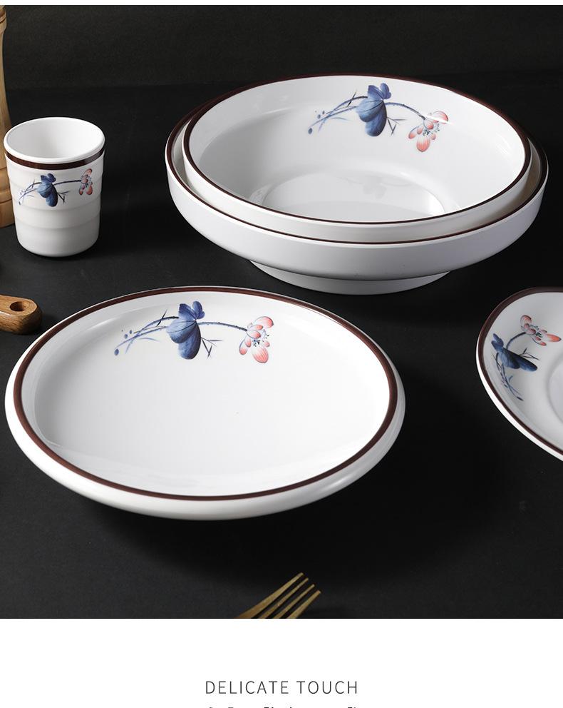 Prato fundo de melamina prato de sopa prato de chapéu de palha imitação de porcelana talheres de plástico restaurante prato de restaurante prato de peixe em conserva comercial