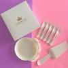 Placa de gota de água Aniversário Chapéu Vela Combinação Caixa de presente Faca de cozimento de alta qualidade e garfo Prato terno Talheres de bolo de aniversário descartáveis