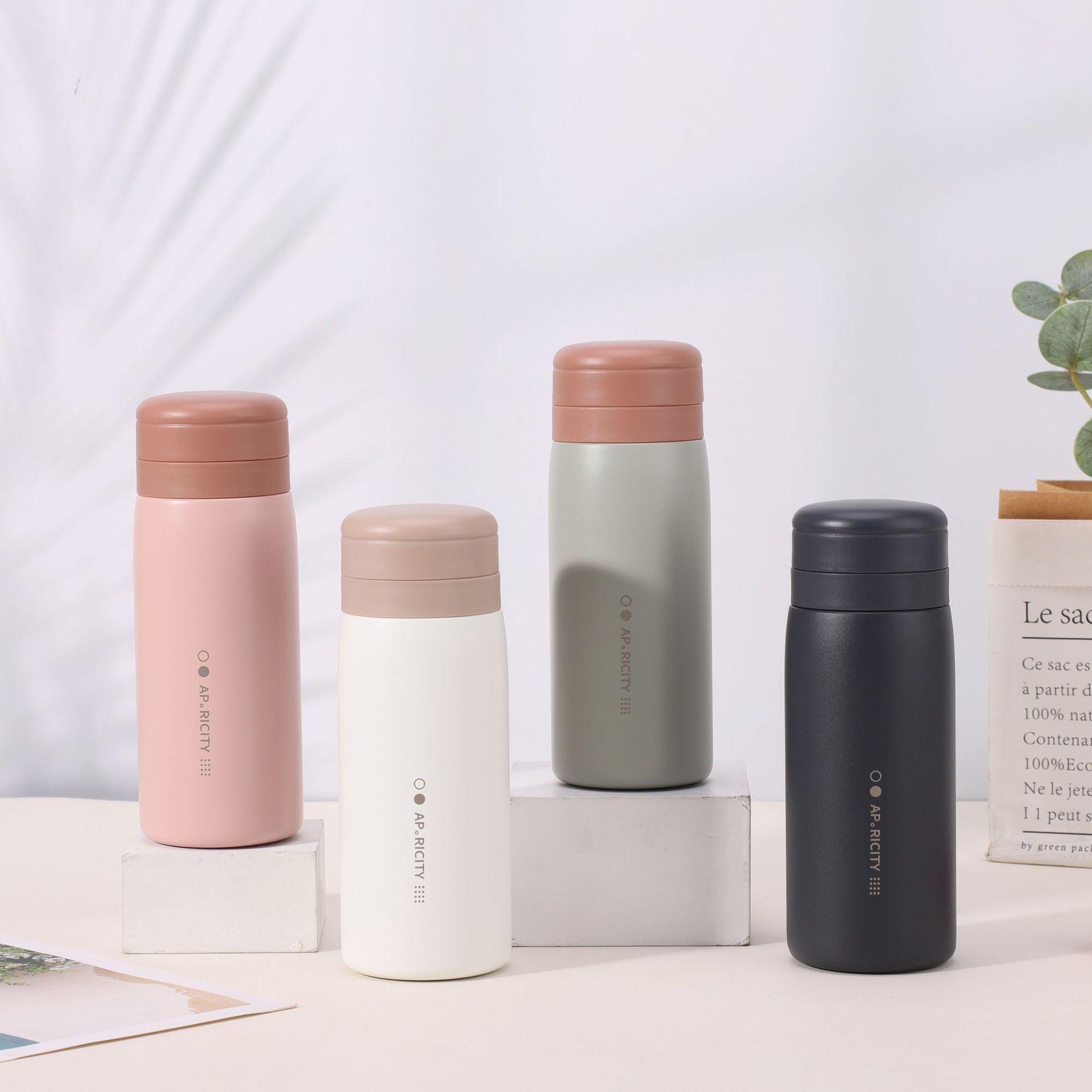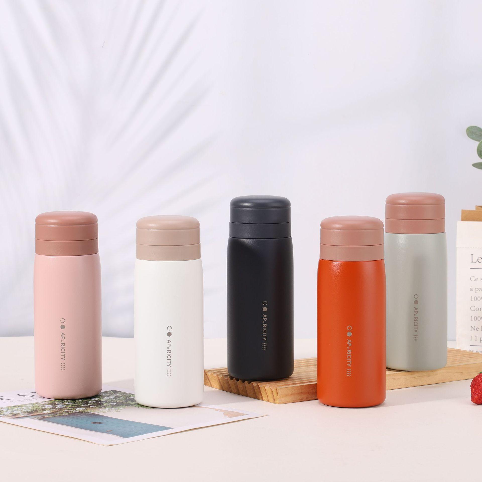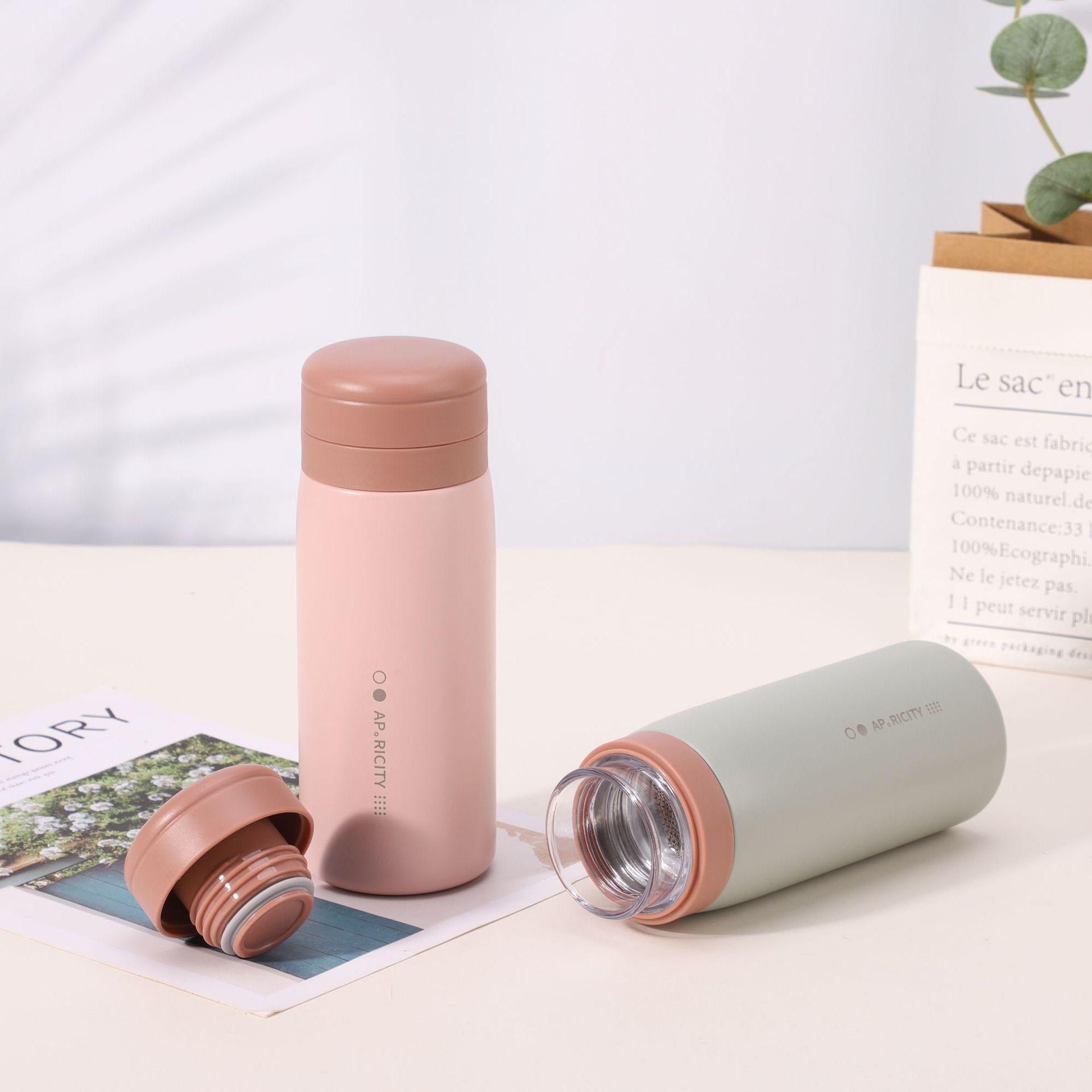 Copo portátil ultraleve com bolso de aba, copo simples de aço inoxidável 304 com isolamento a vácuo, copo compacto portátil para separação de chá e água