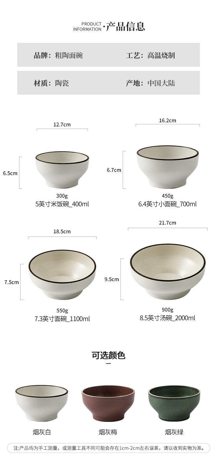 Tigela de arroz de cerâmica japonesa, tigela especial para restaurante, tigela de macarrão de cerâmica vintage, utensílios de mesa para uso doméstico, hotel, nova tigela de sopa cinza e verde
