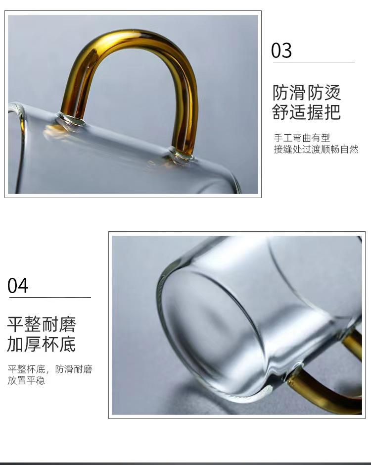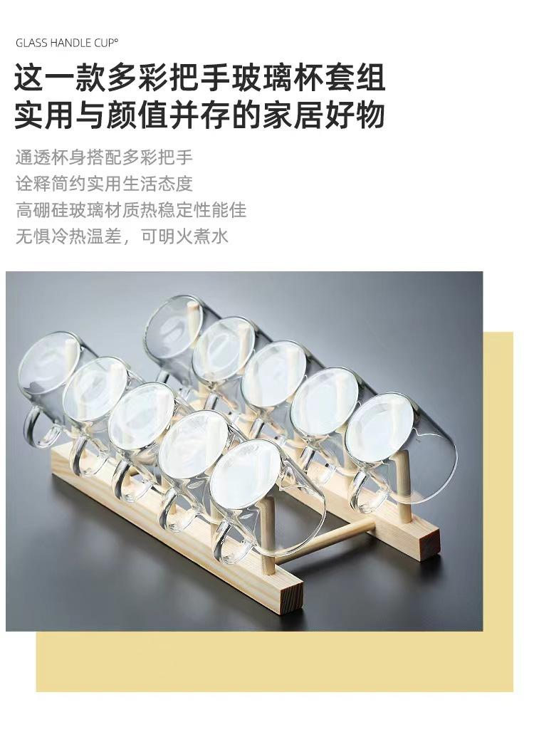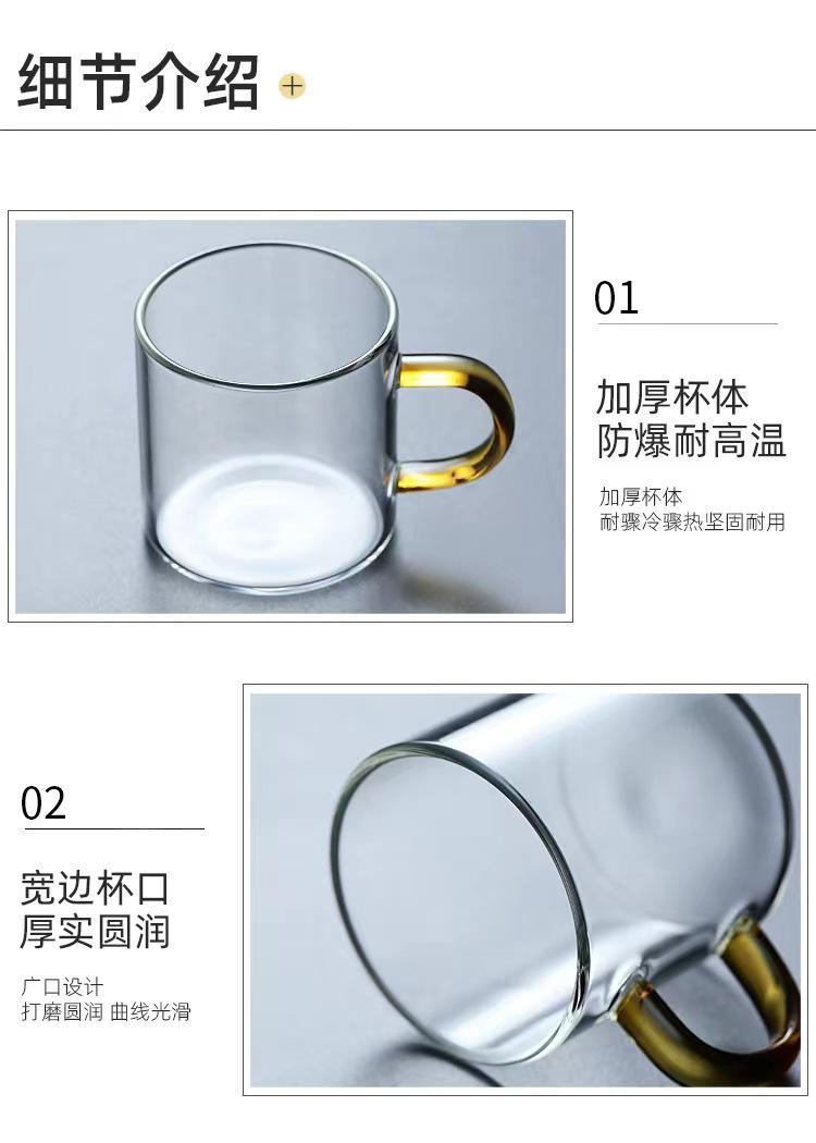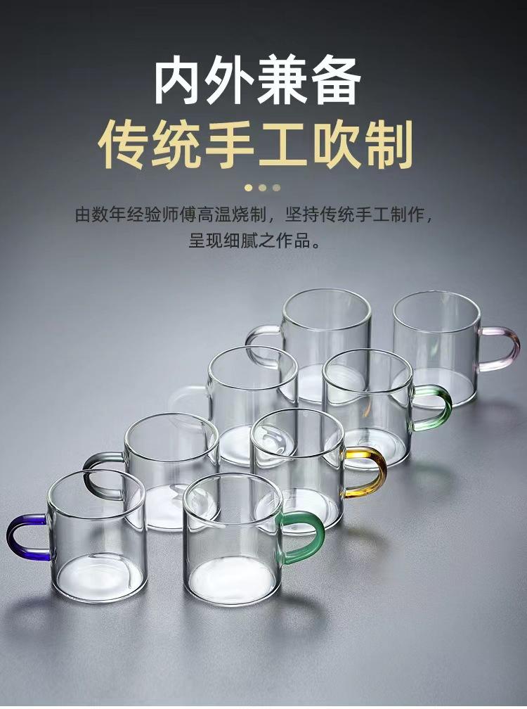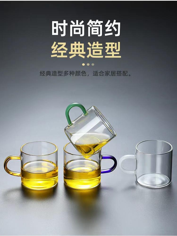 Copo de chá pequeno com alça colorida de vidro de borosilicato alto, copo de chá transparente com alça pequena, acessórios para conjunto de chá Kung Fu
