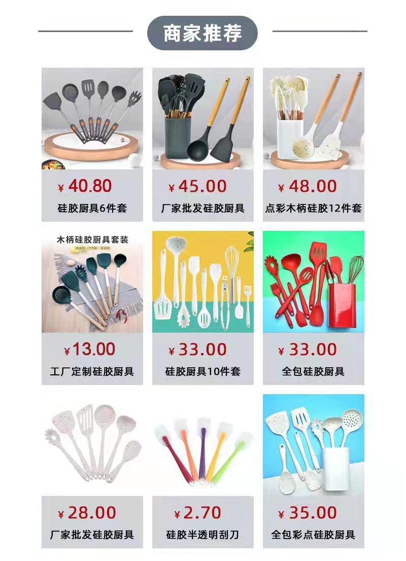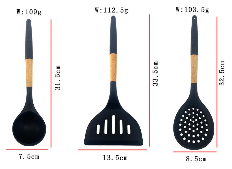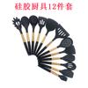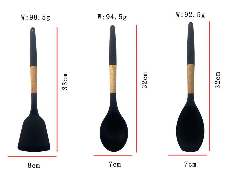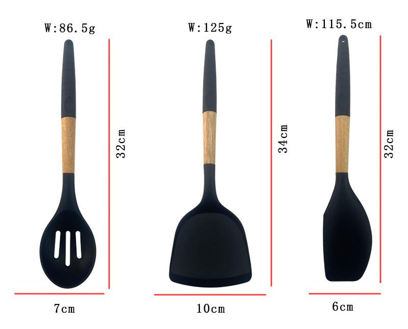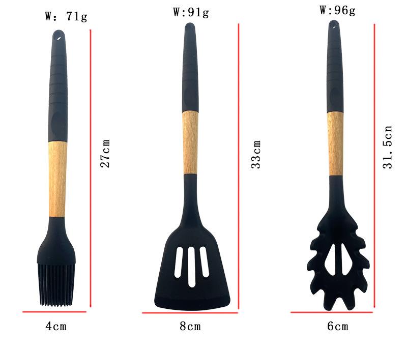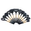 Utensílios de cozinha de silicone 12 peças Coador de cozinha Utensílios de cozinha Colher Pá Resistente a altas temperaturas Pá para fritar Antiaderente Cabo de madeira Utensílios de cozinha de silicone