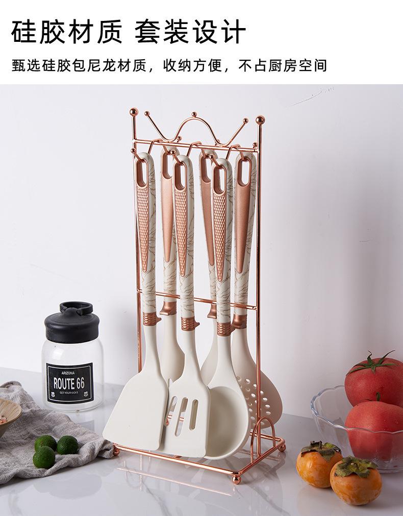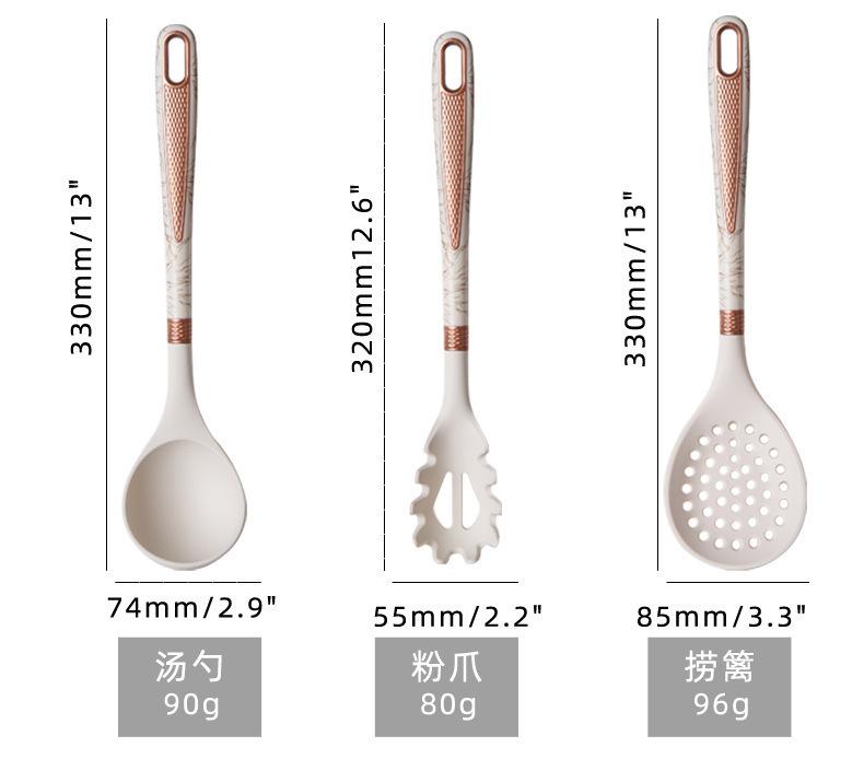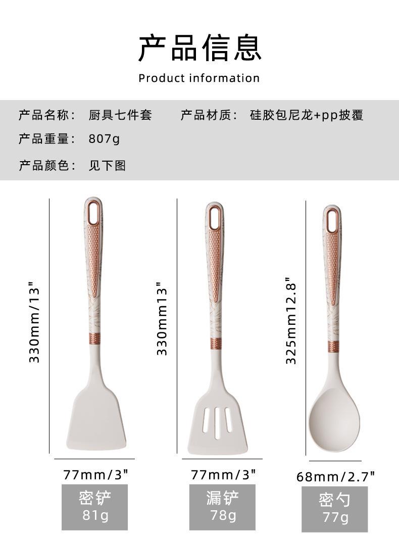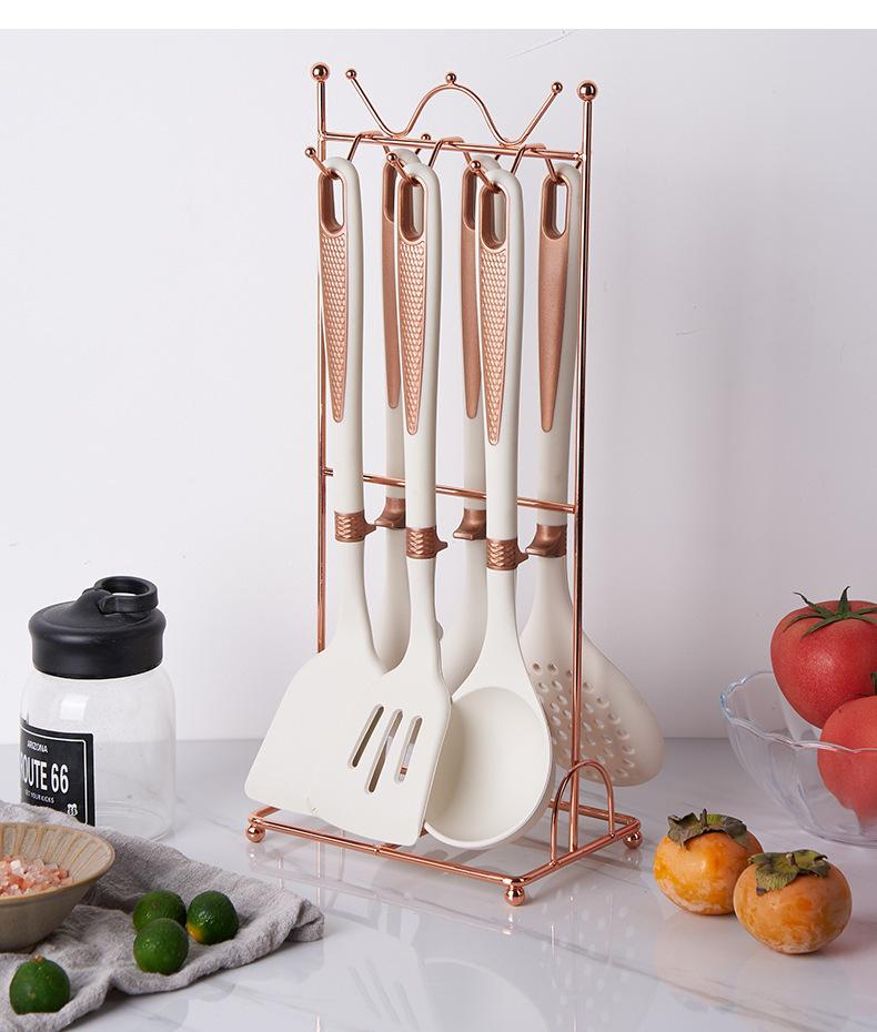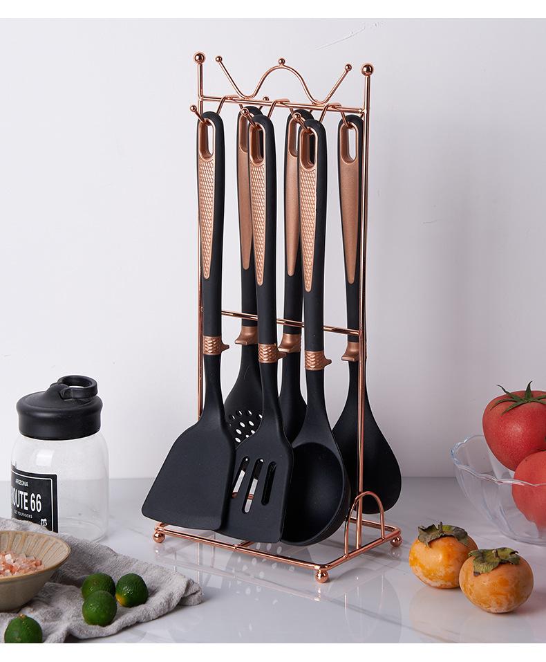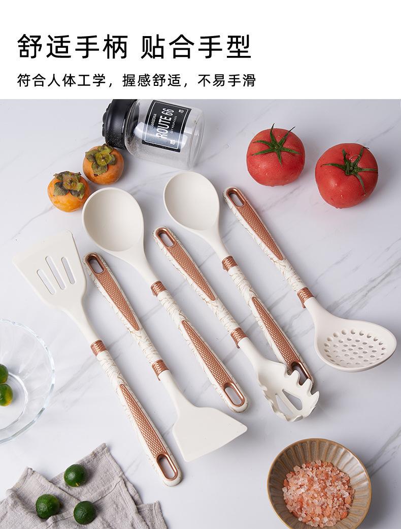 Utensílios de cozinha de silicone transfronteiriços, panela antiaderente, espátula, colher de sopa de silicone, escorredor, cerca de pesca, pá de cozinha, colher com suporte para utensílios de cozinha