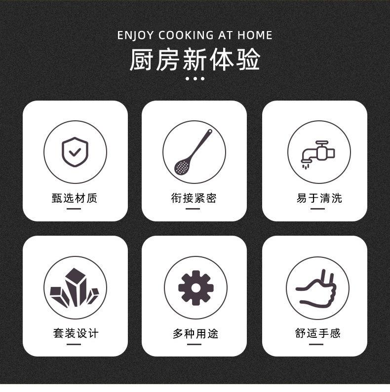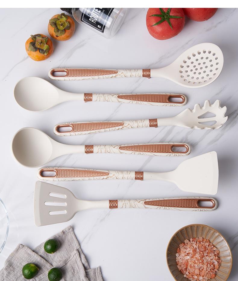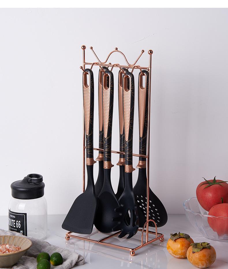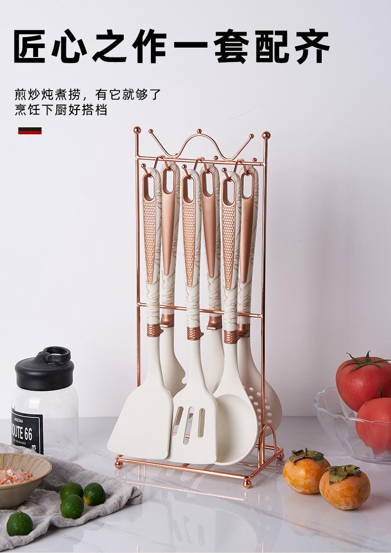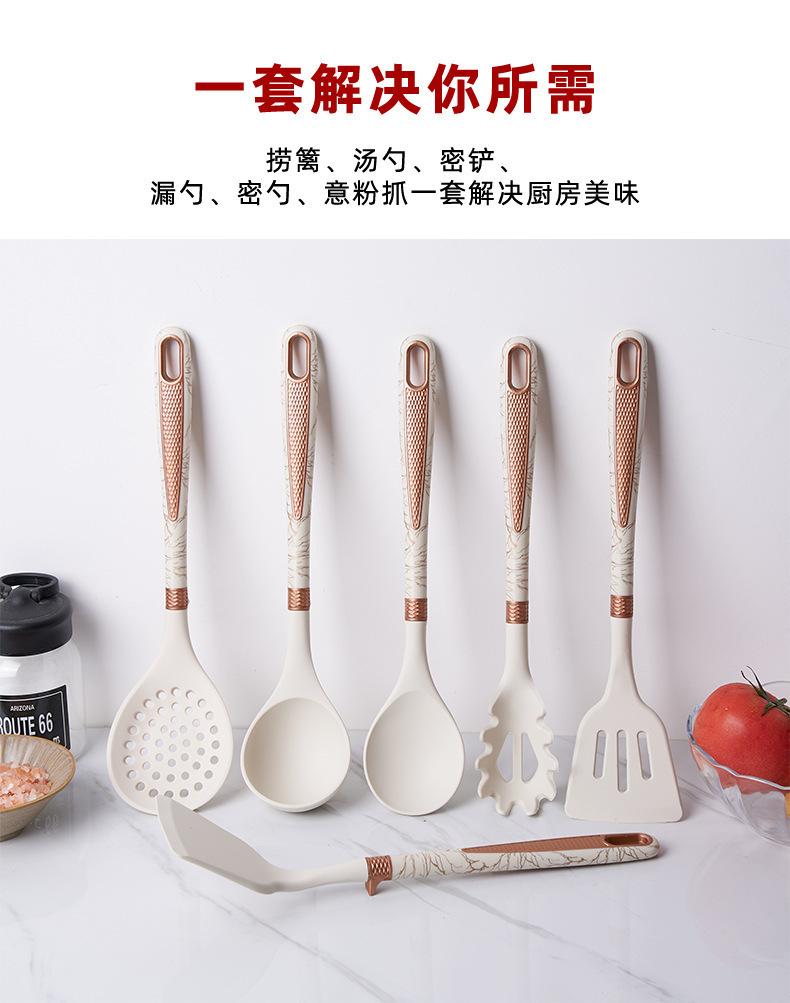 Utensílios de cozinha de silicone transfronteiriços, panela antiaderente, espátula, colher de sopa de silicone, escorredor, cerca de pesca, pá de cozinha, colher com suporte para utensílios de cozinha