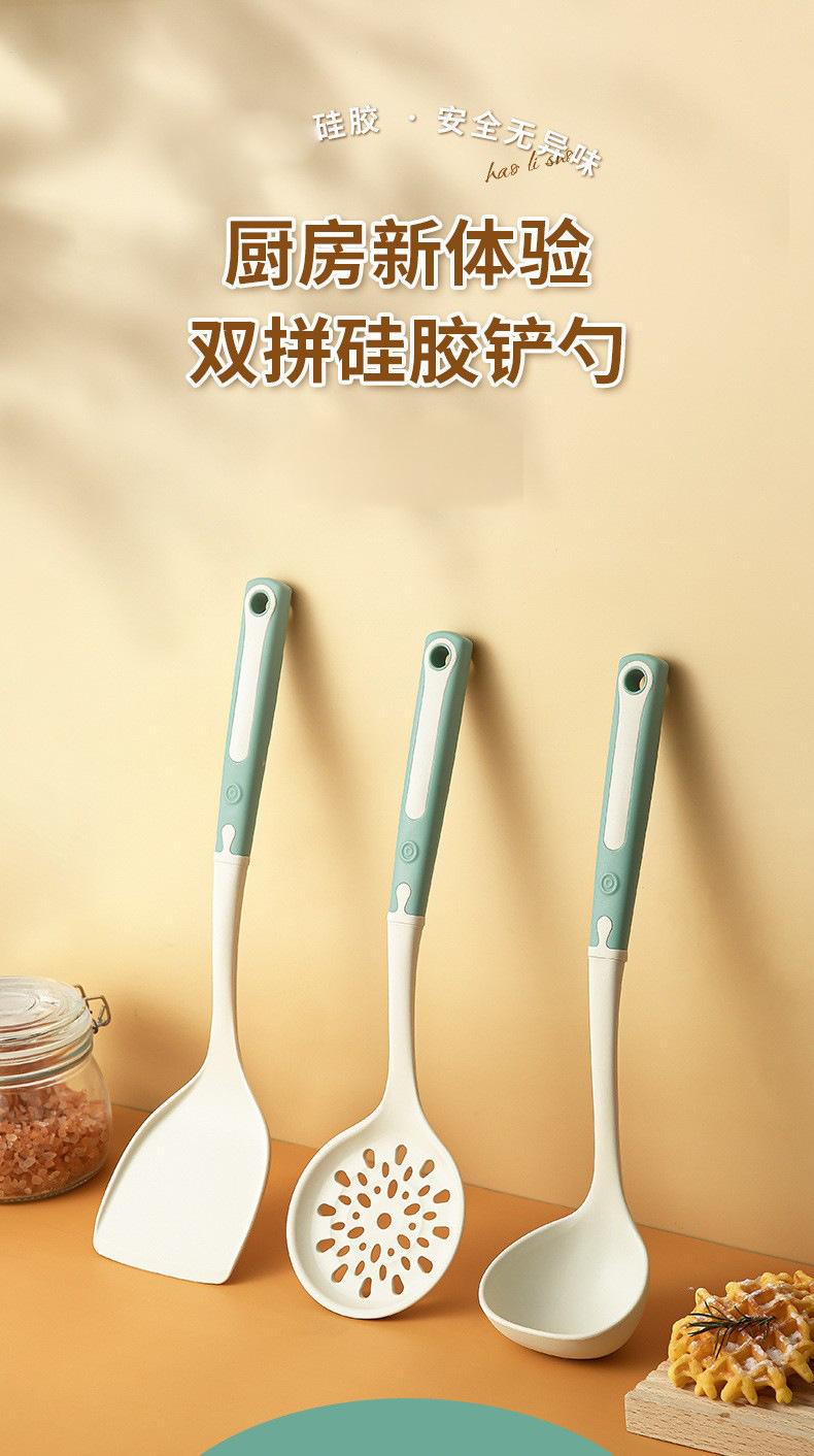 Pá de silicone para uso doméstico Pá de silicone Coador Resistente a altas temperaturas Panela antiaderente especial Pá para fritar Colher com vazamento Utensílios de cozinha