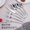 Cross-border alto valor estrela diamante aço inoxidável faca e garfo colher banhado a ouro bife faca e garfo colher de sobremesa ocidental talheres terno