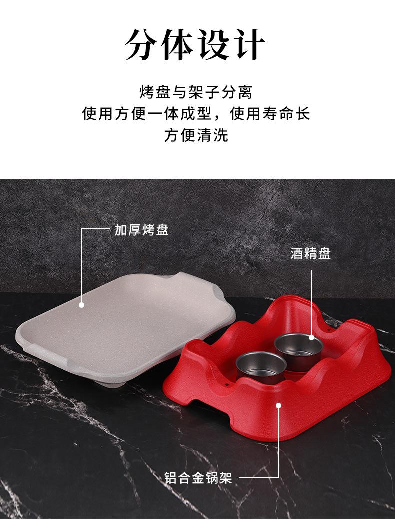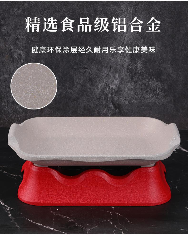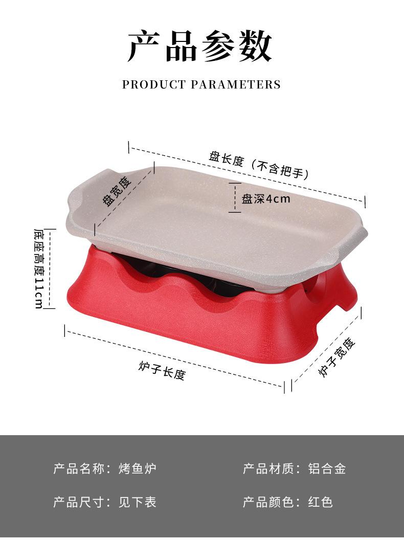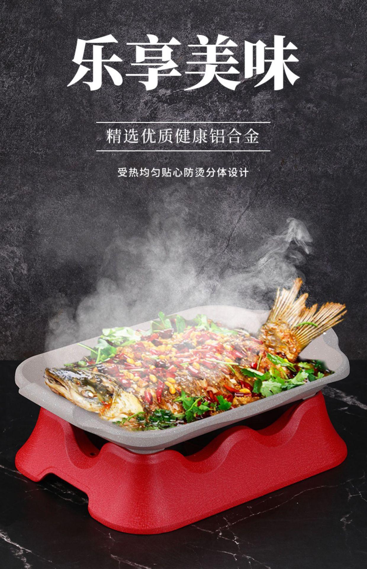 Único pequeno peixe grill placa comercial restaurante álcool aquecimento forno liga de alumínio retangular peixe grill antiaderente churrasco placa