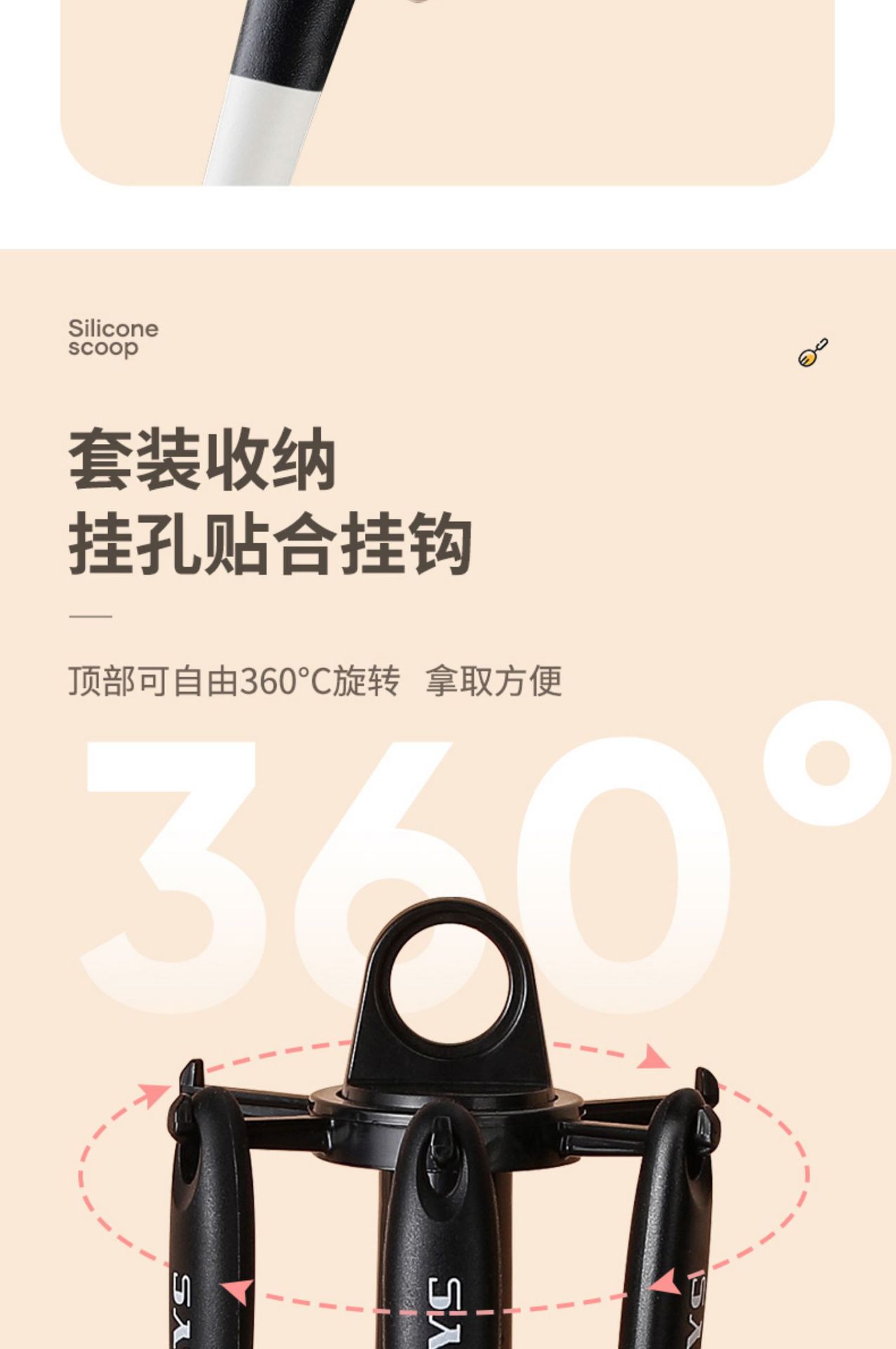 Milk black spatula + spoon + colander + stand [food grade silicone_high temperature resistance 230℃】