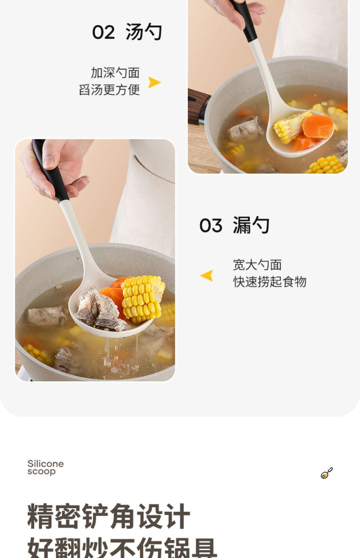 Espátula de silicone antiaderente espátula de cozinha doméstica grau alimentício resistente a altas temperaturas grande colher de sopa escorredor utensílios de cozinha terno