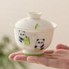 Tigela de chá de vidro de alta qualidade pintada à mão com três tampas e flor de pêssego, conjunto de chá com tampa, não quente, tigela de chá kung fu