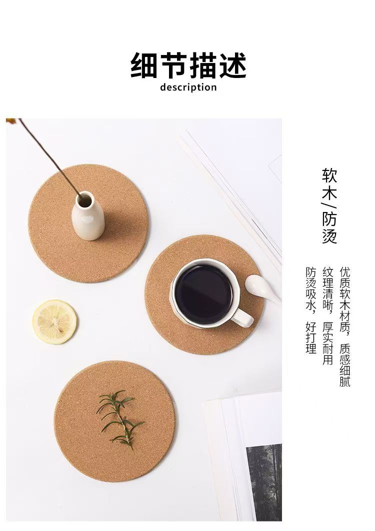 Porta-copos de cortiça personalizado com isolamento térmico absorvente de madeira para copos, jogo americano com impressão UV e padrão de LOGOTIPO personalizado redondo de 10 cm