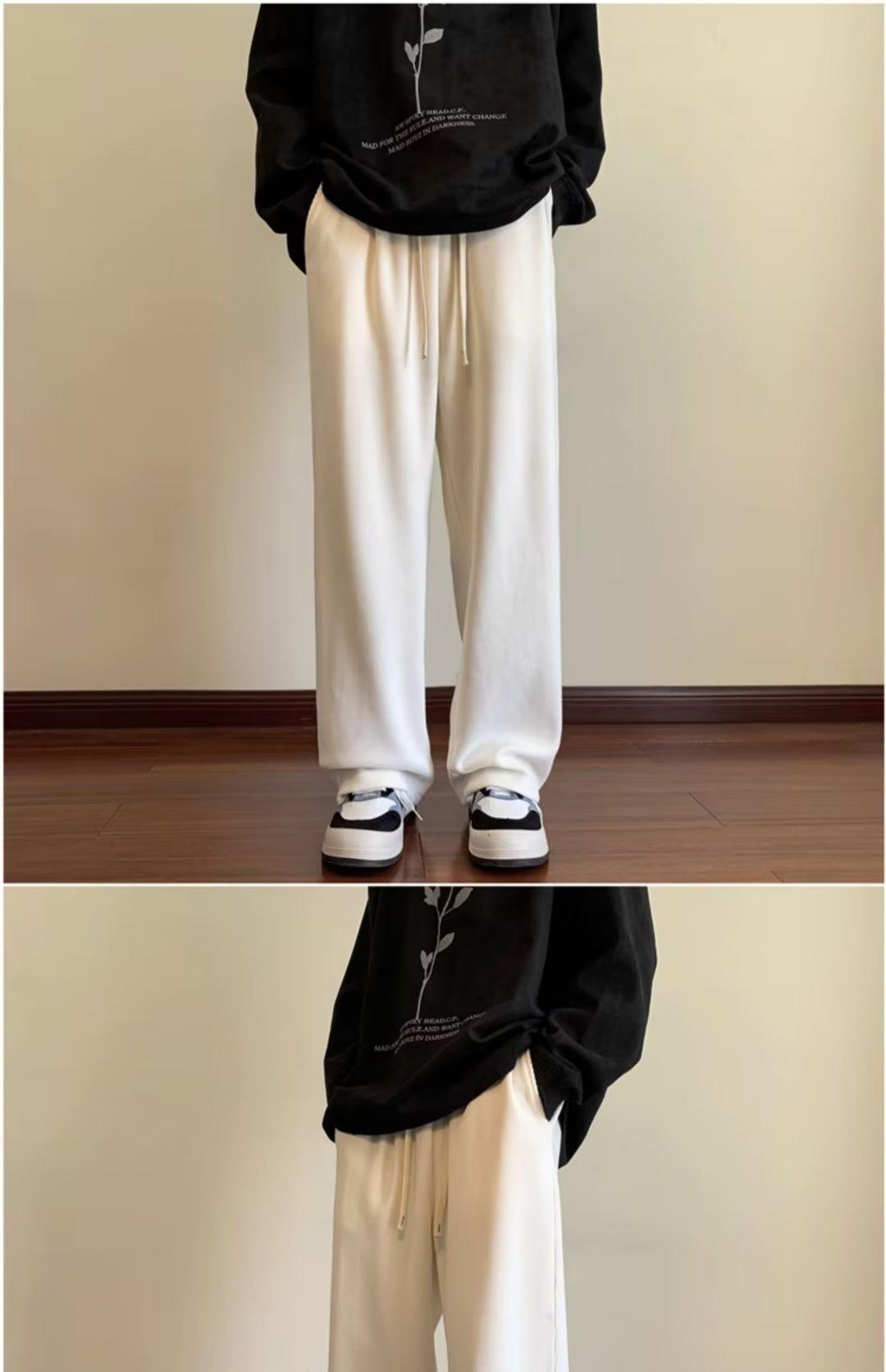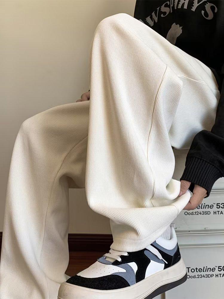 Marca de moda americana retrô calças esportivas brancas masculinas primavera e outono 2023 novas calças compridas largas casuais retas soltas