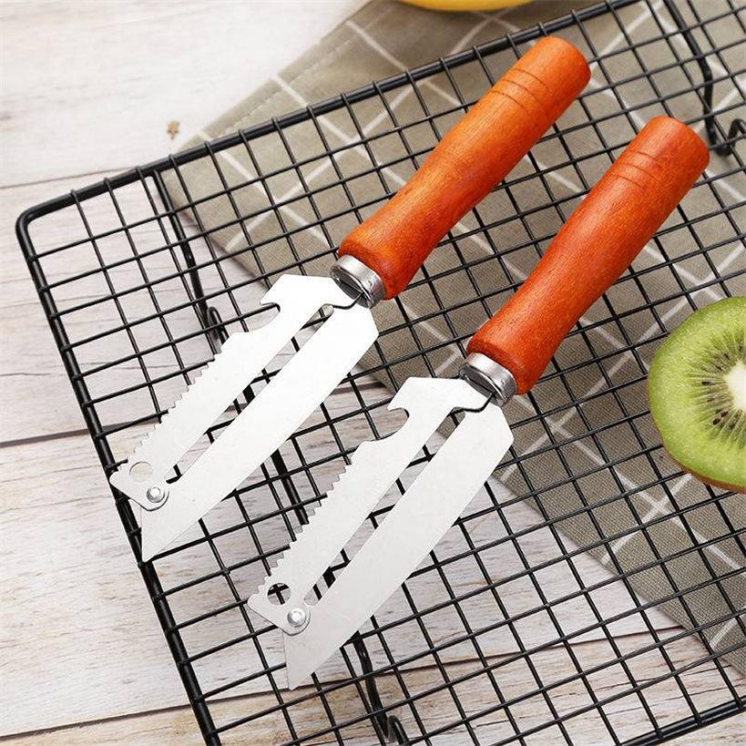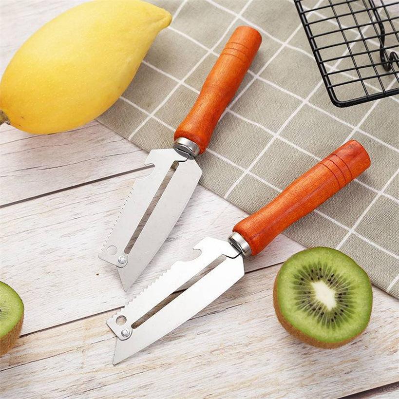Descascador de cabo de madeira descascador de aço inoxidável grande faca de madeira plaina de frutas descascamento de cana-de-açúcar plaina cozinha 1 yuan loja de departamentos