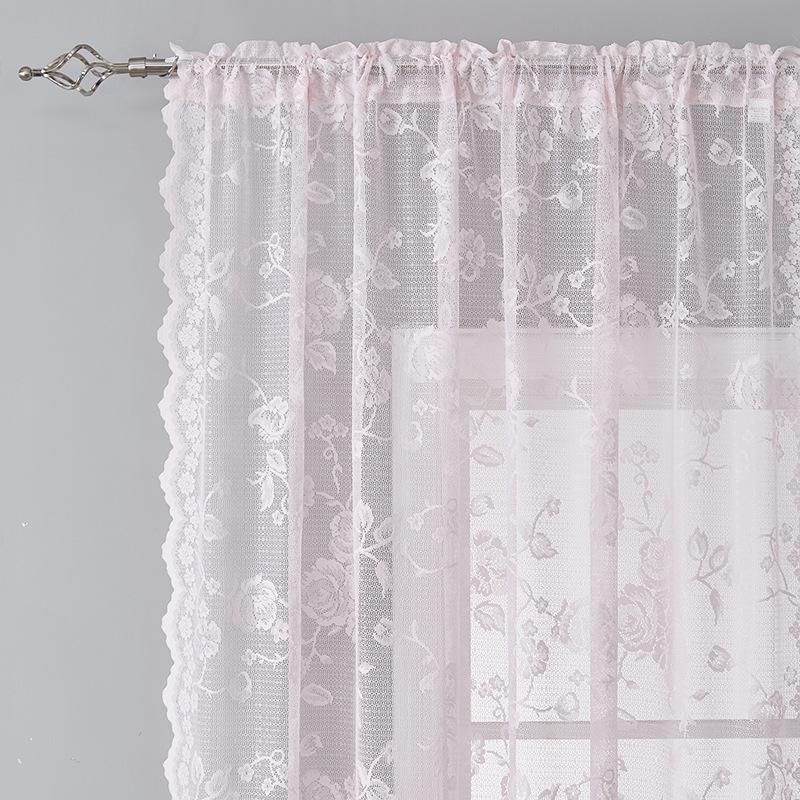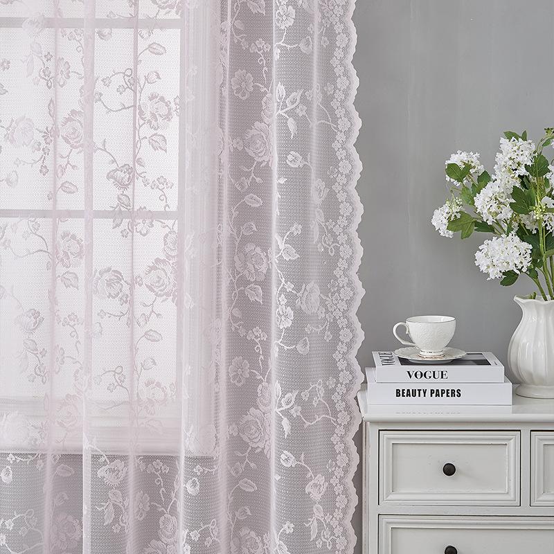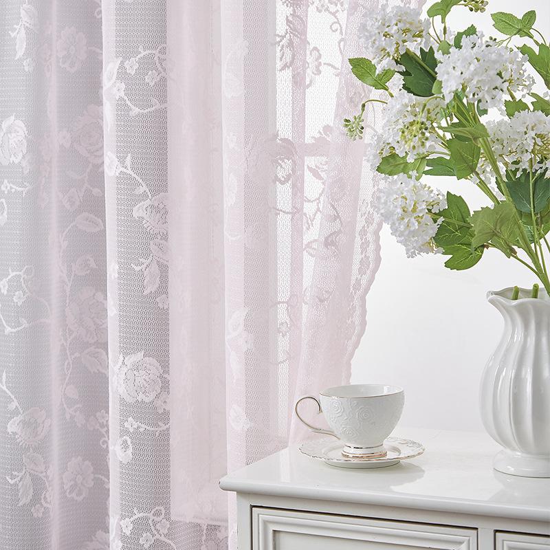 Cortina de rosa francesa sombreamento tela de janela acabada desgaste haste tecido de renda atacado perfuração grátis instalação cortina acabada atacado
