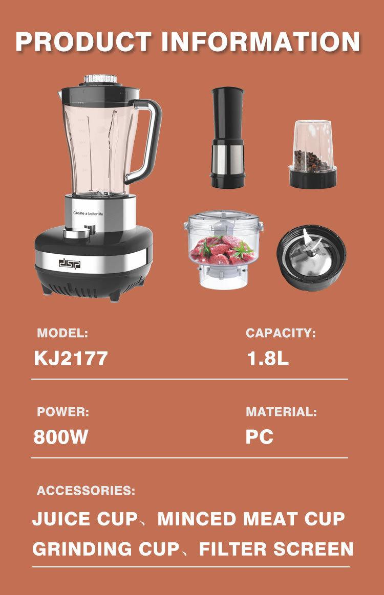 Acessórios: copo de suco de qualidade alimentar de 1,8 L (PC), copo de carne picada de 650 ml (PC), copo de moagem de 450 ml (PC), filtro, copo de amendoim e ketchup de 300 ml * 2 (PC)