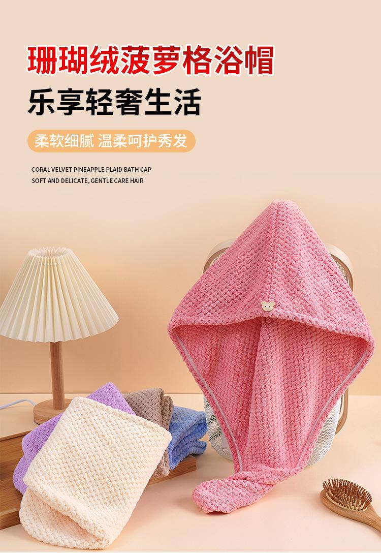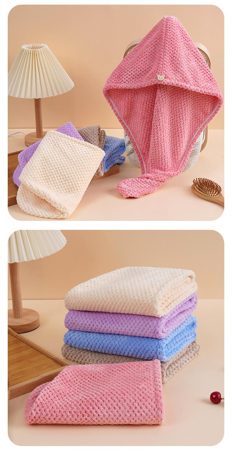 Touca de Cabelo de Veludo Coral Listras Abacaxi Transfronteiriça Atacado Macia Absorvente Touca de Banho Espessada Secagem Rápida Turbante Toalha de Cabelo Seco