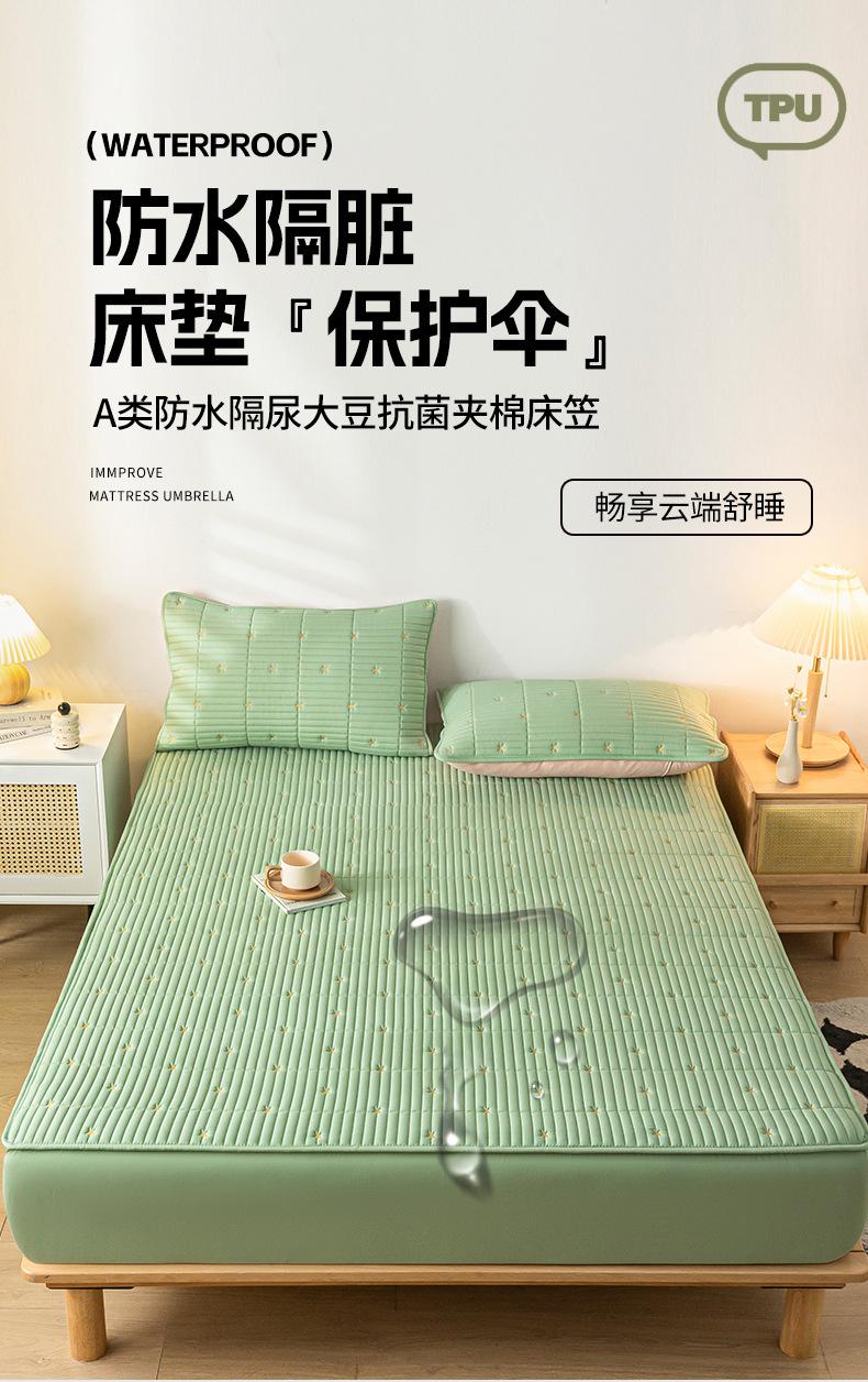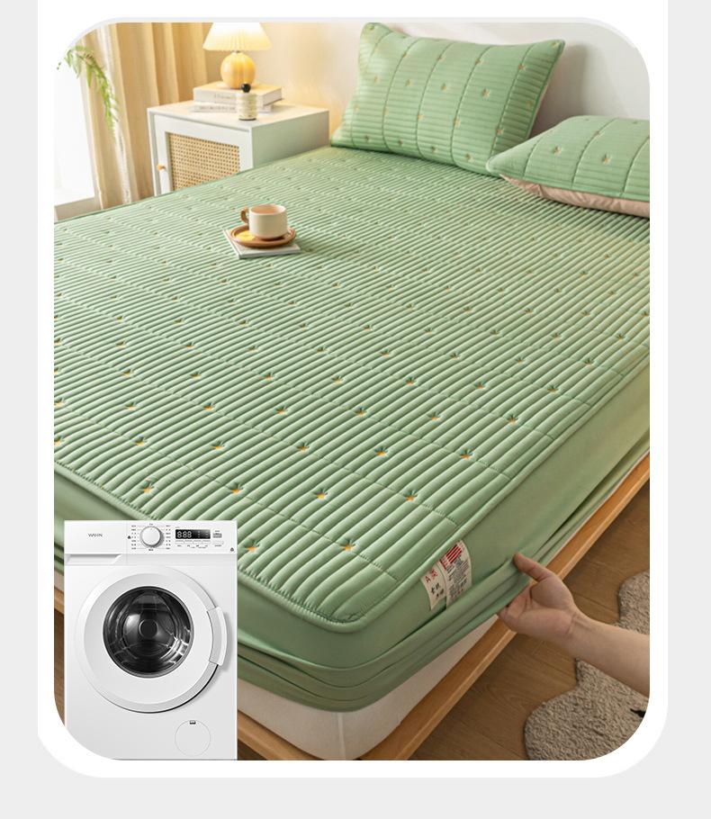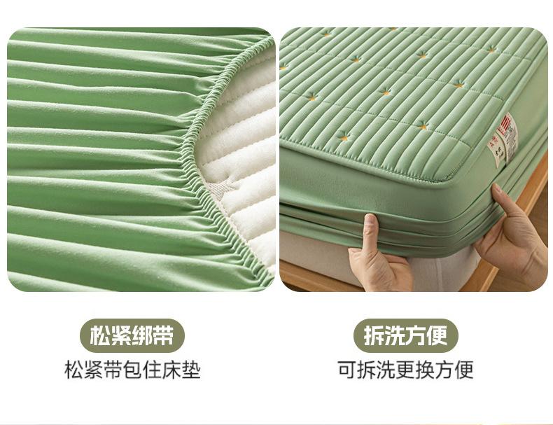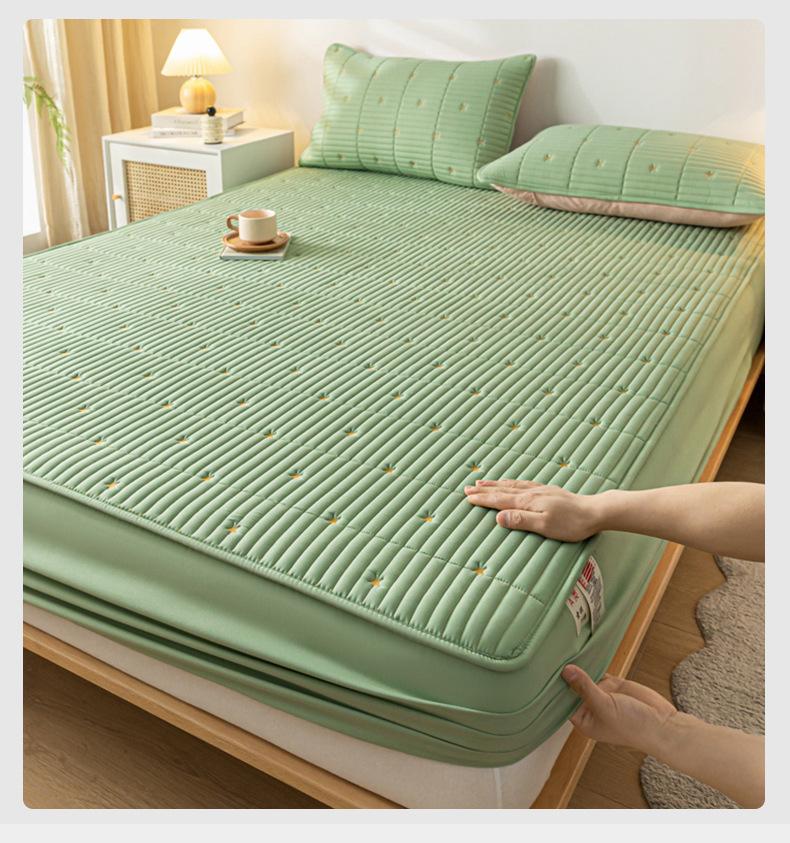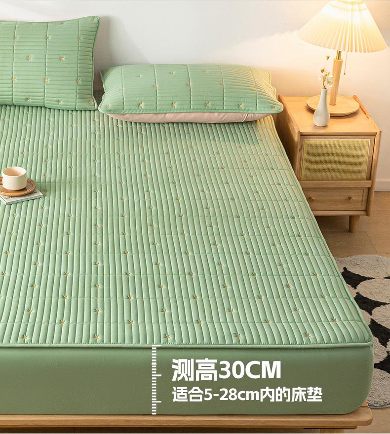 Lençol de cama bordado à prova d'água e à prova de urina de algodão cru, cor sólida, capa de colchão, capa protetora, capa de cama, três peças, código externo, transfronteiriço