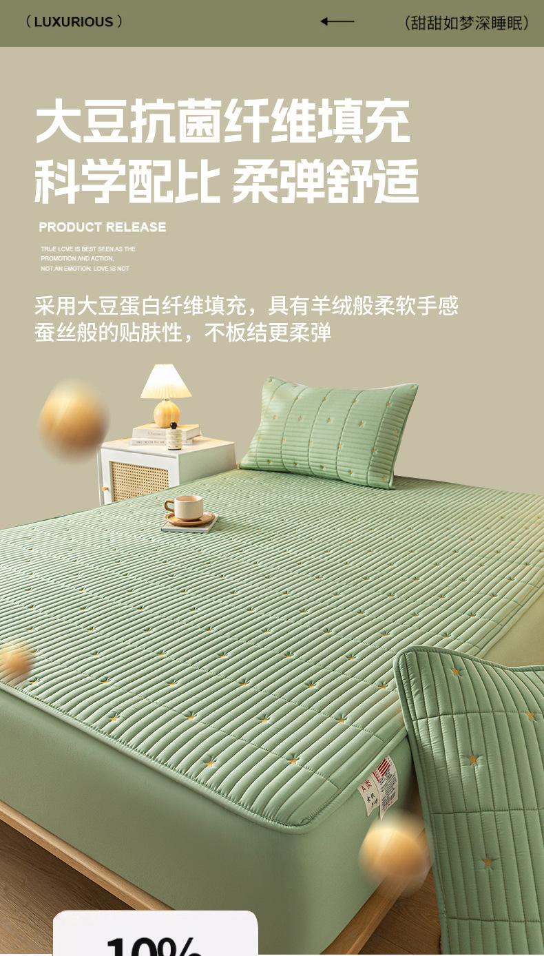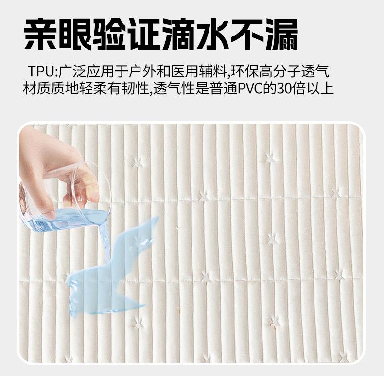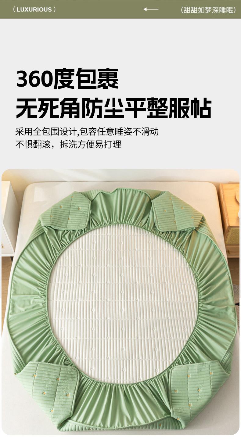 Lençol de cama bordado à prova d'água e à prova de urina de algodão cru, cor sólida, capa de colchão, capa protetora, capa de cama, três peças, código externo, transfronteiriço